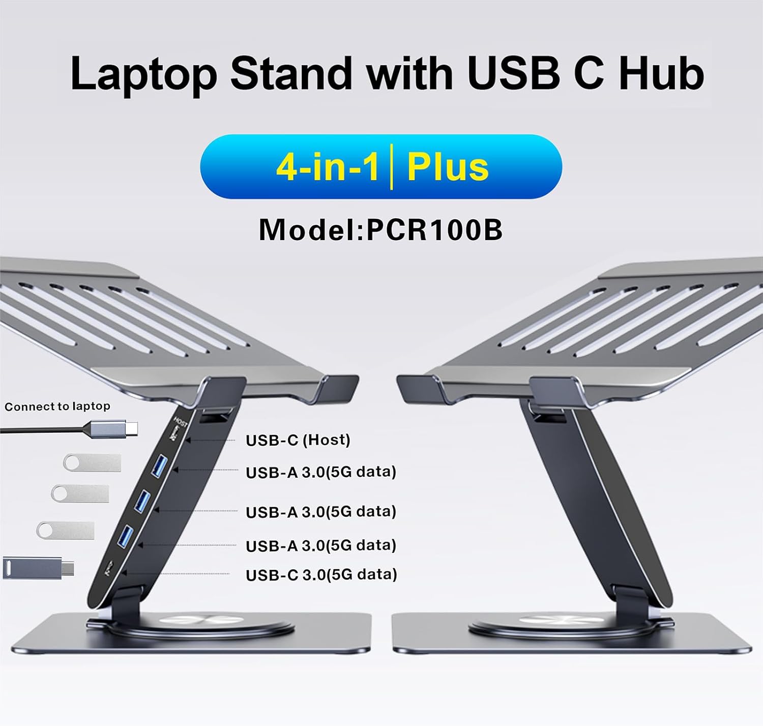 MacBook Pro/Air/Dell/HP/Surface/Lenovo HC 360度回転するノートパソコンスタンド USBハブ付き 調節可能