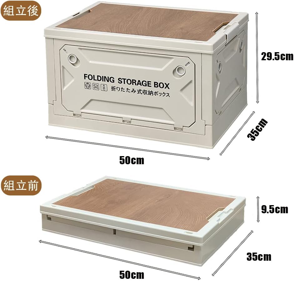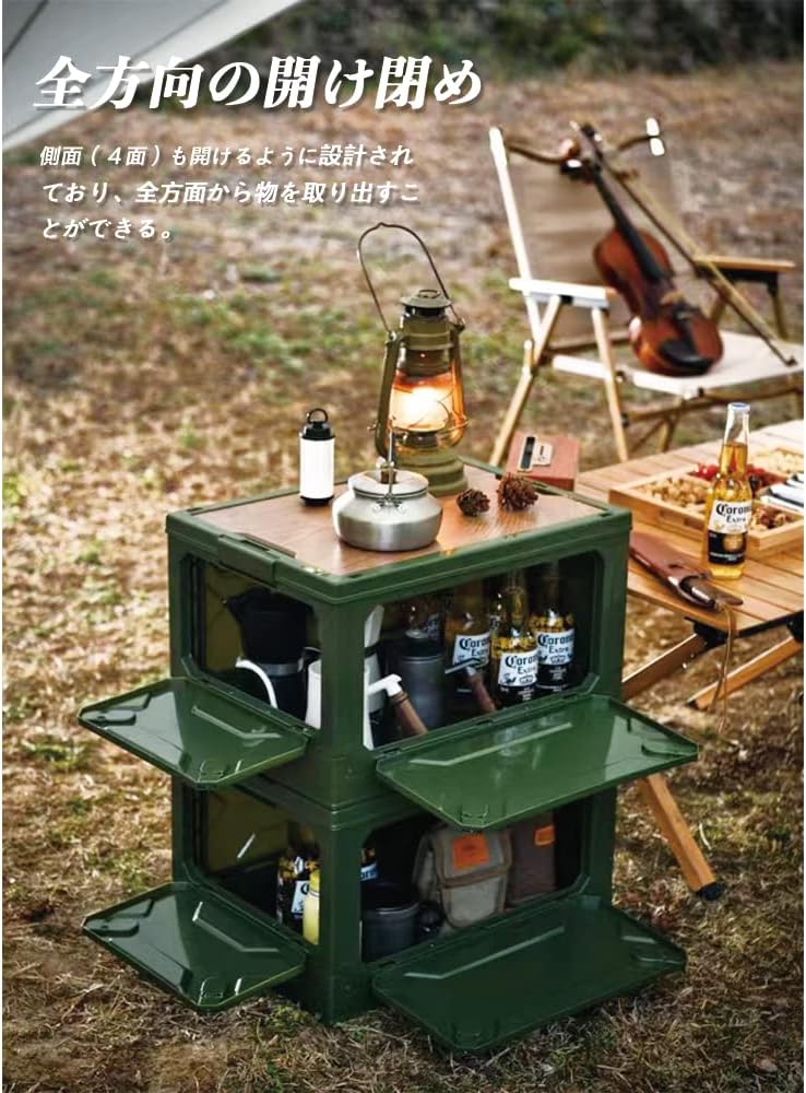 キャンプ コンテナ 折りたたみ 蓋付き キャスター付き 全方向から取り出せる 積み重ね こうぎょうふう 強い耐荷重 大容量 50L 幅50×奥行35×高さ29.5cm (ホワイト)