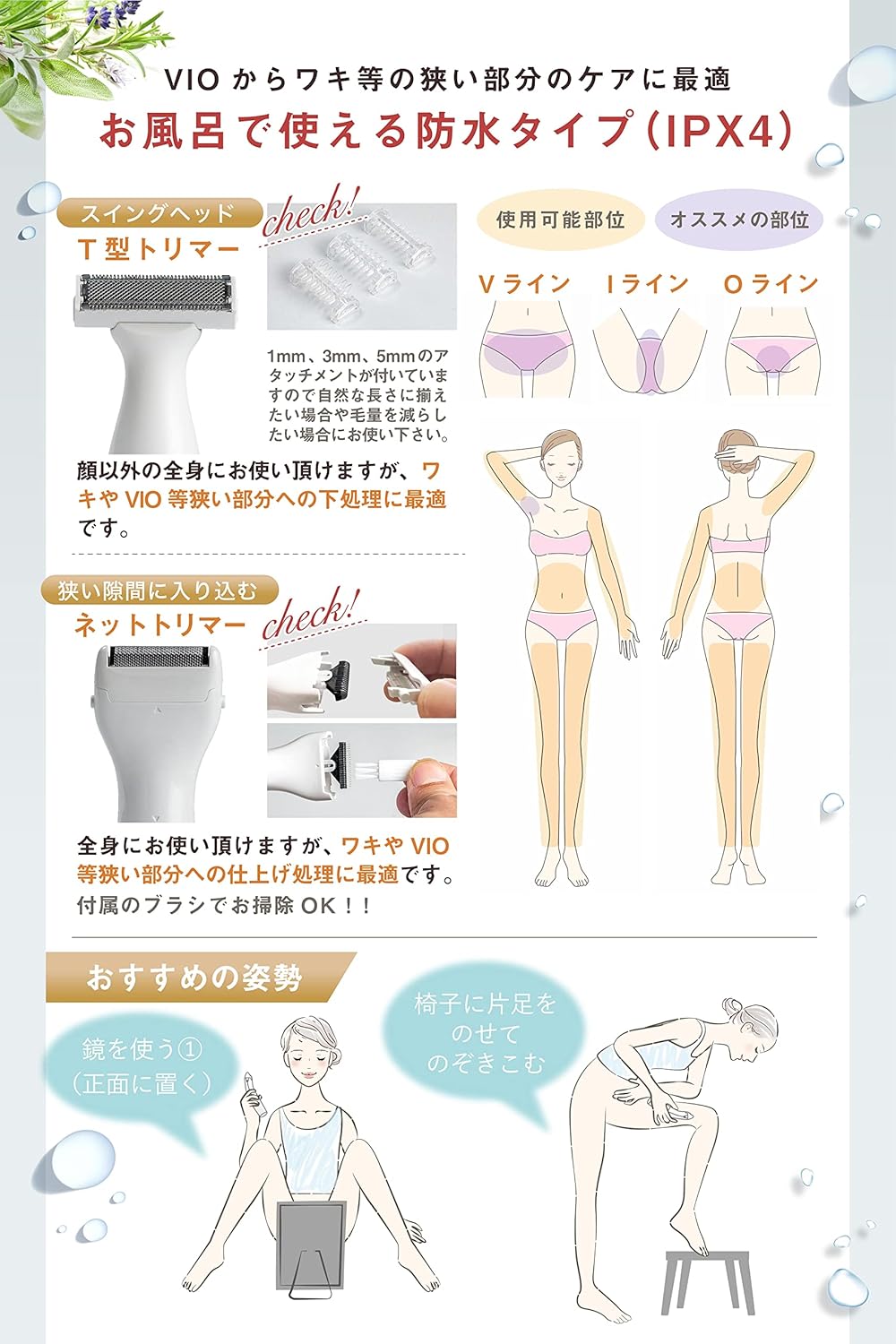 USB 充電式 全身 眉毛 女性 男性 お風呂で使える防水タイプ vioから全身に使える 痛くない