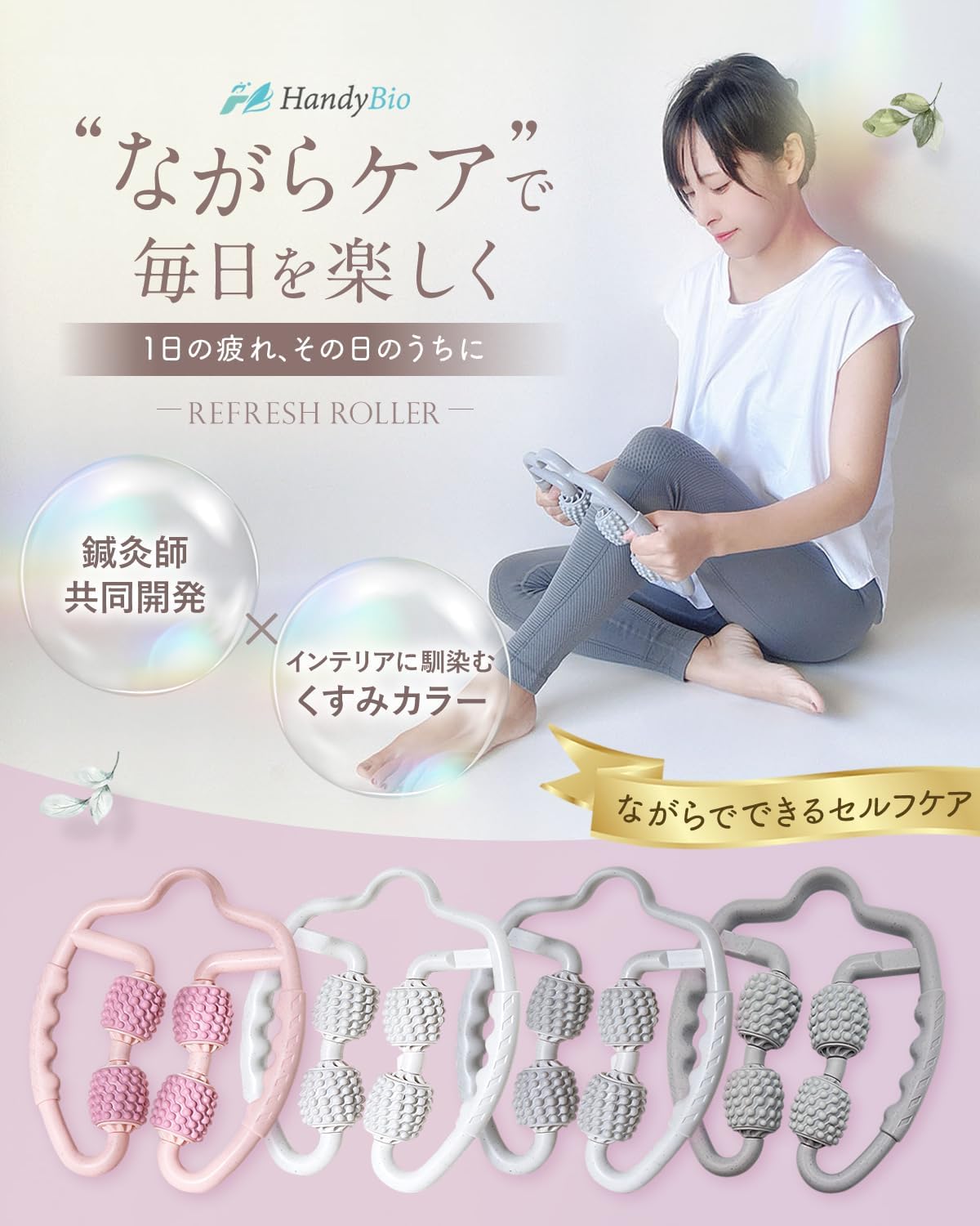 マッサージ ローラー 筋膜ローラー リングマッサージャー 筋膜リリース 筋膜 ふくらはぎ 足 お洒落 HandyBio (ピンク)