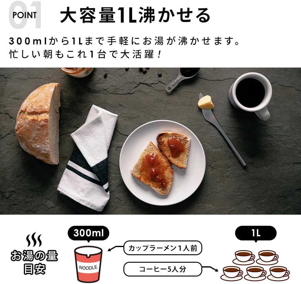 空焚き防止機能付き 1.0L コンパクト