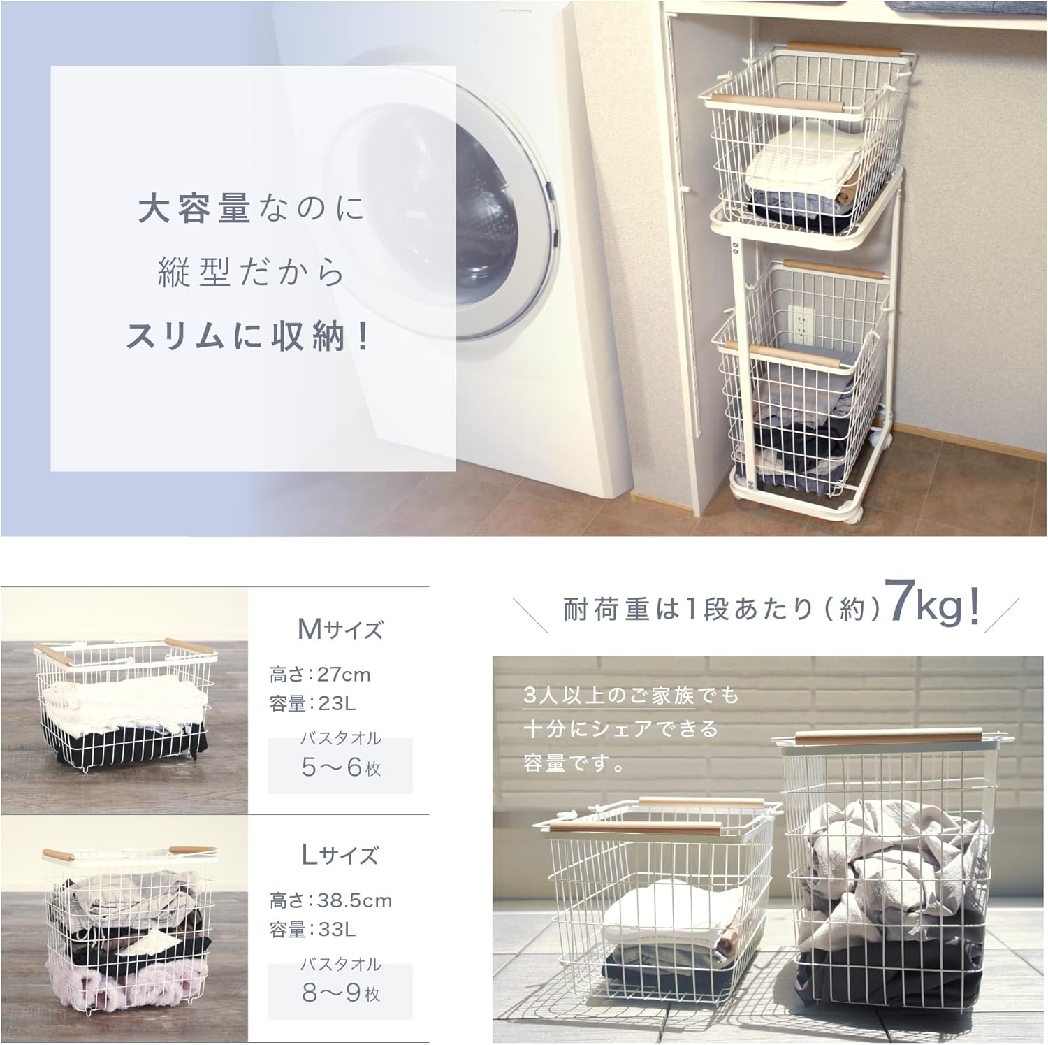 洗濯カゴ 二段 洗濯かご 2段 かご ランドリー ランドリーワゴン+バスケット 3点セット ランドリー バスケット 2段 キャスター 持ち手付 分別可能 脱衣所 洗濯かご 簡単組み立て おしゃれランドリーワゴン 大容量(ホワイト)