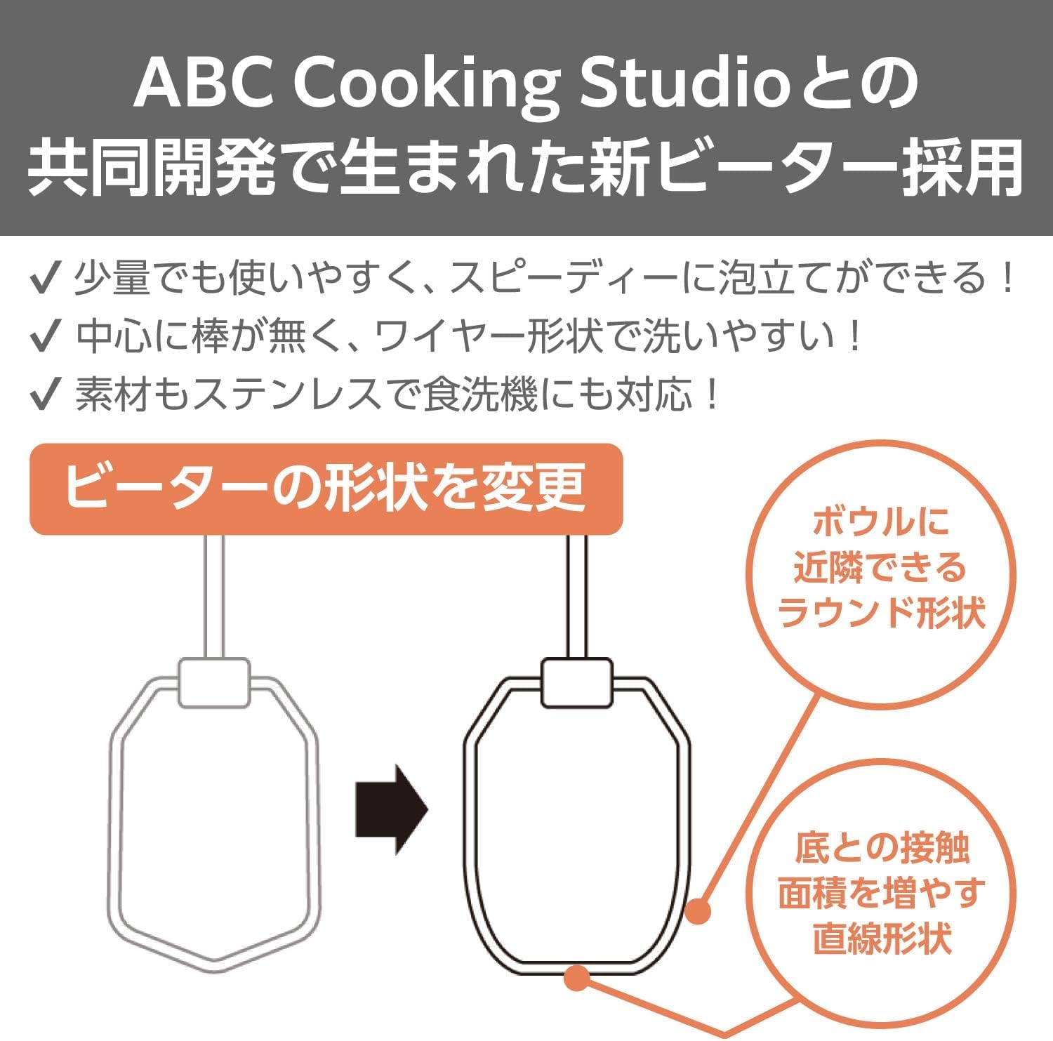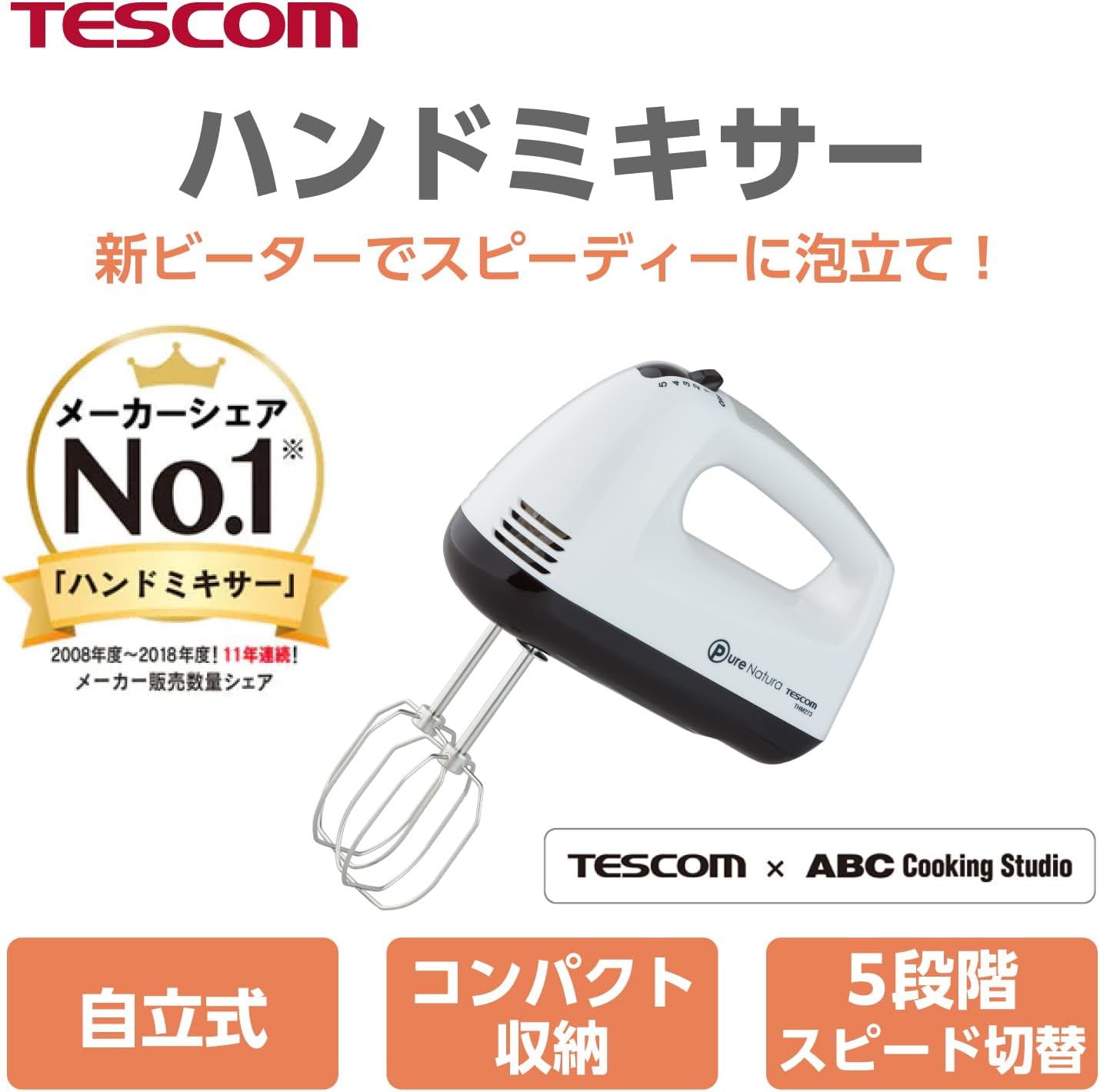 泡立て器 立てて置ける自立式 5段階切替 【ABC Cooking Studioとの共同開発】 取り外しワンタッチ