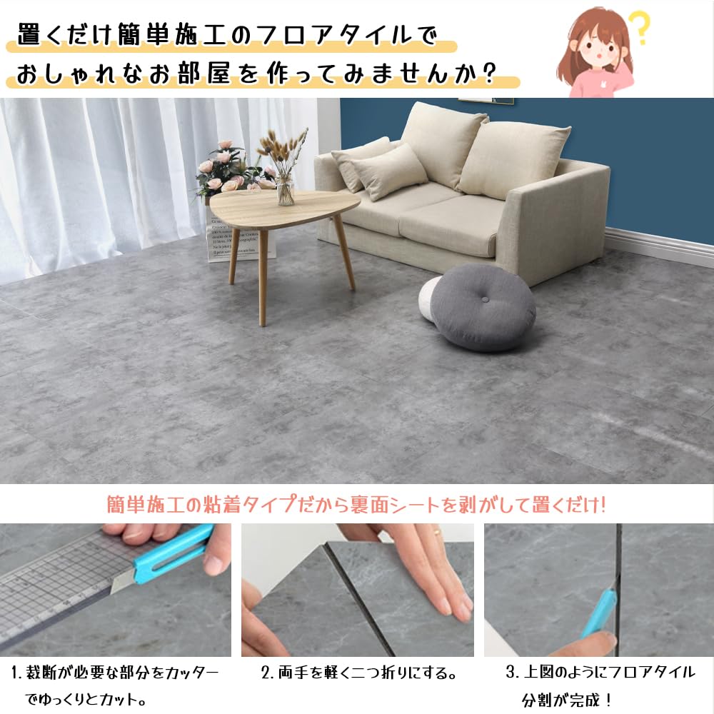 【108枚 約6畳】フロアシート 撥水 防汚 傷防止 床材シール 接着剤不要 置くだけ 土足OK DIY