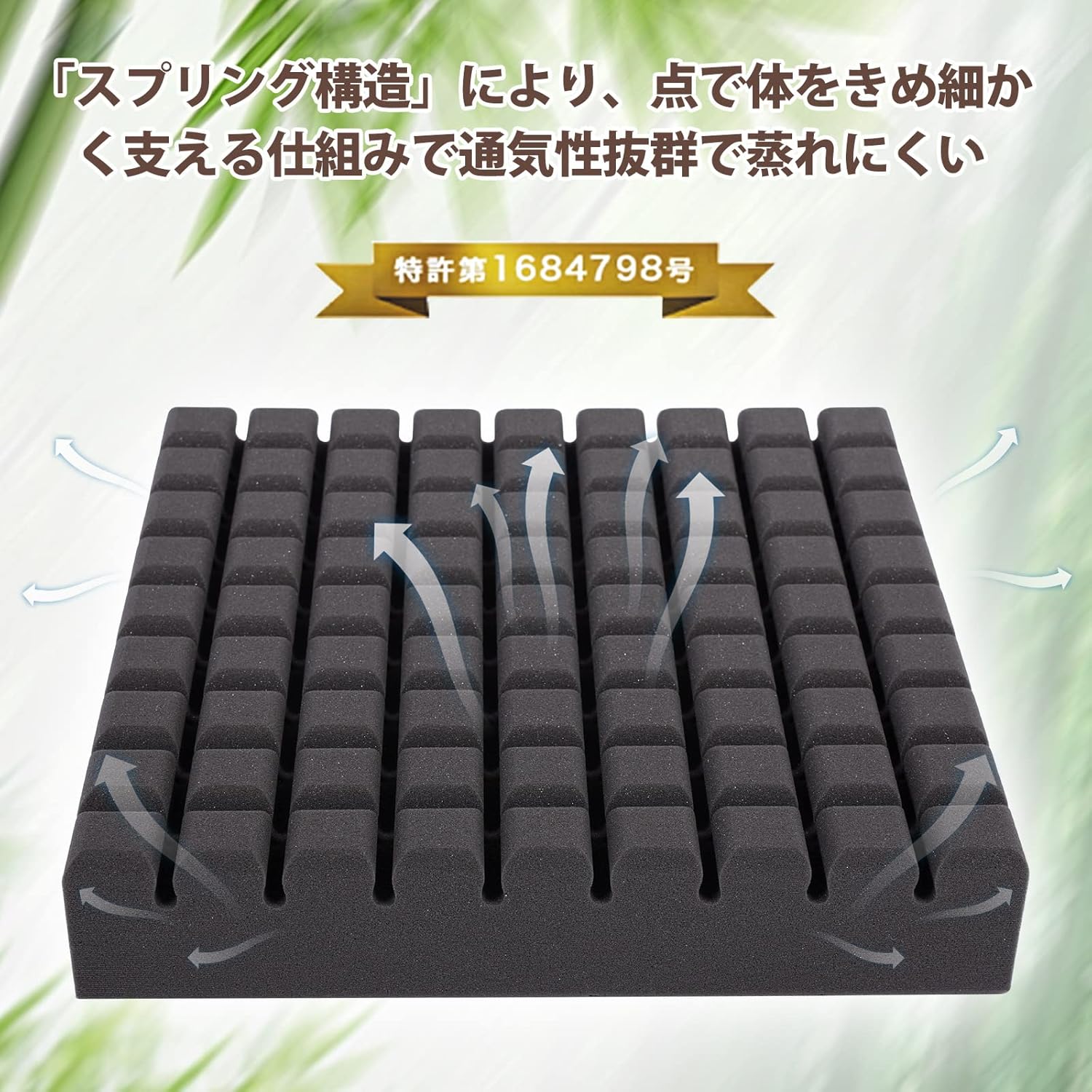 厚め 通気 高反発 椅子クッション お尻が痛くならない ざぶとん フロアクッション 幅41cm厚さ7.5cm (41X41, くろい)
