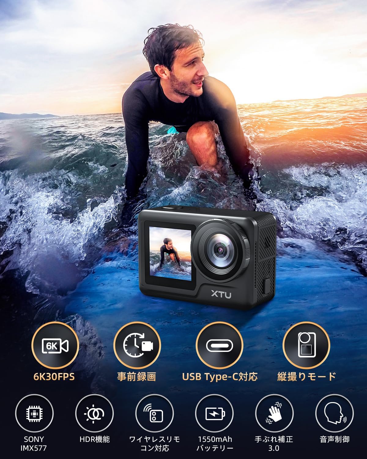 4K60FPS 20MP アクションカム 縦向き撮影 SuperSmooth手ぶれ補正3.0 スポーツカメラ