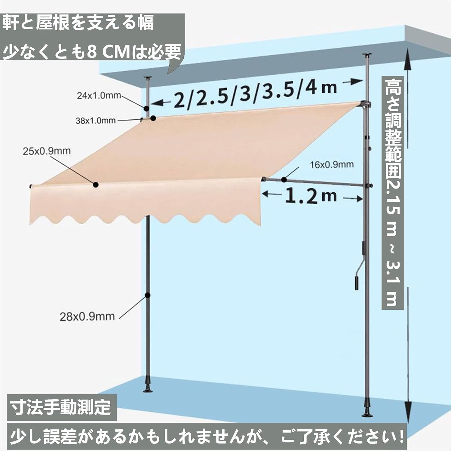 DIYオーニング 手動格納式オーニング 突っ張り式サンシェード DY0338