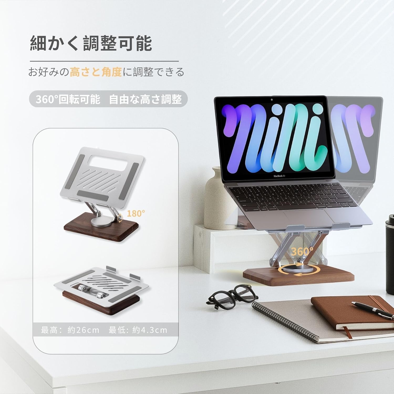 pcスタンド 高さ/角度調整可能 360回転式 パソコン台 卓上 折りたたみ式 ラップトップスタンド