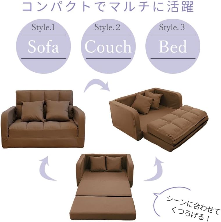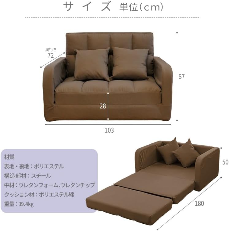 3WAY グリーン ソファー時 W1030 x D720 x H670(SH:280) (mm) ベッド時 W1030 x D1800 x H500(床高:150) (mm) 折りたためるマットレス カウチソファ ソファベッド くつろぎ時間 クッション2個付