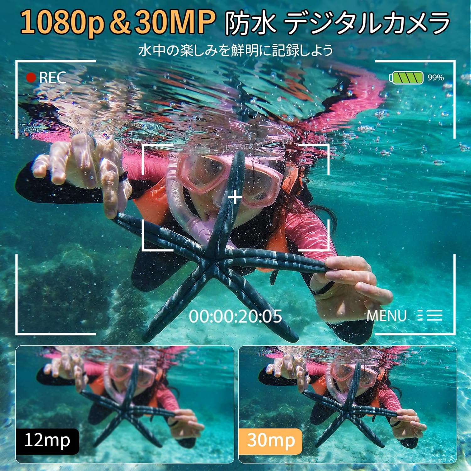 自撮可能 防水デジカメ 動画&写真 16倍デジタルズーム 3M防水