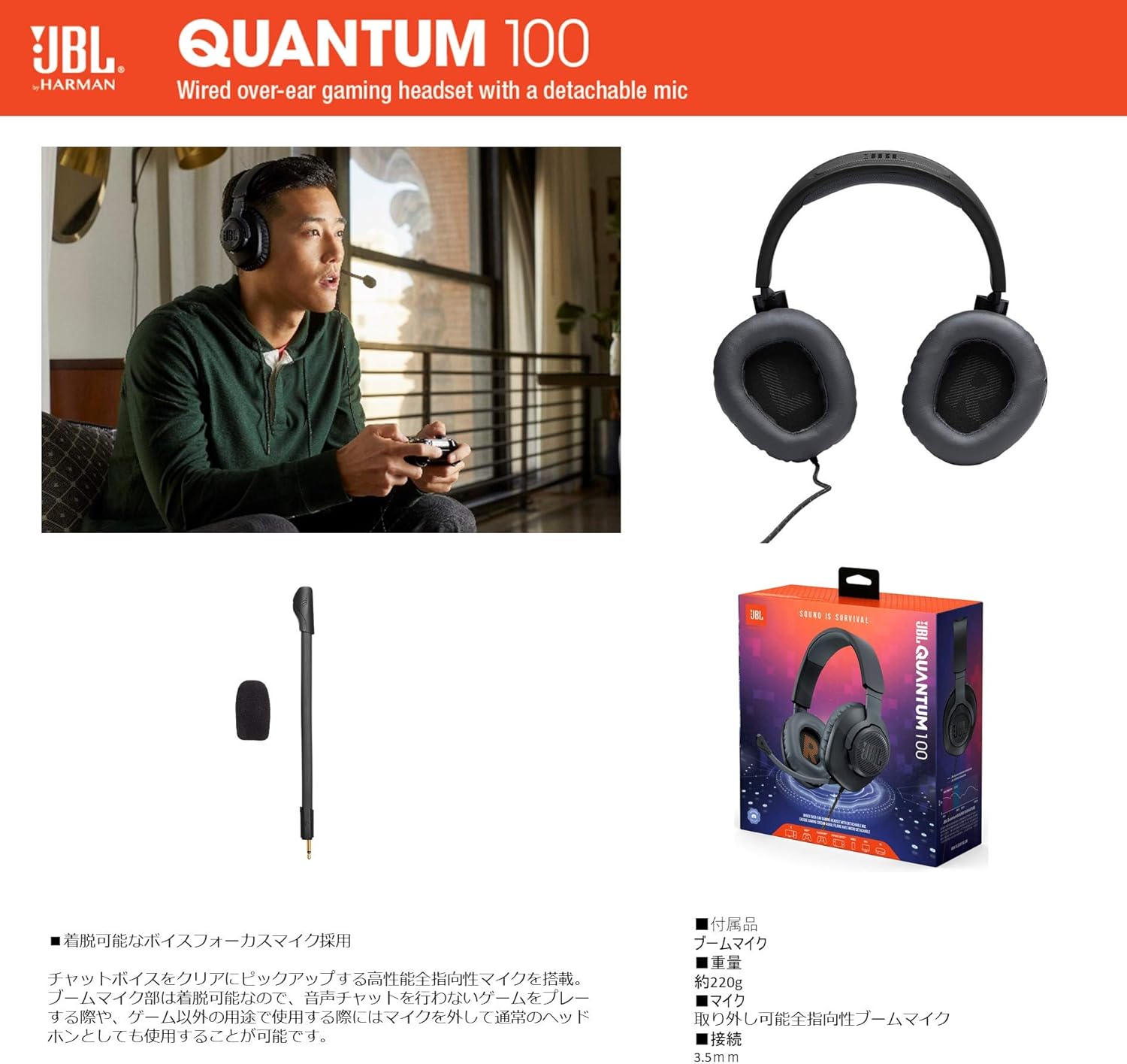 JBL QUANTUM 100 ゲーミングヘッドセット