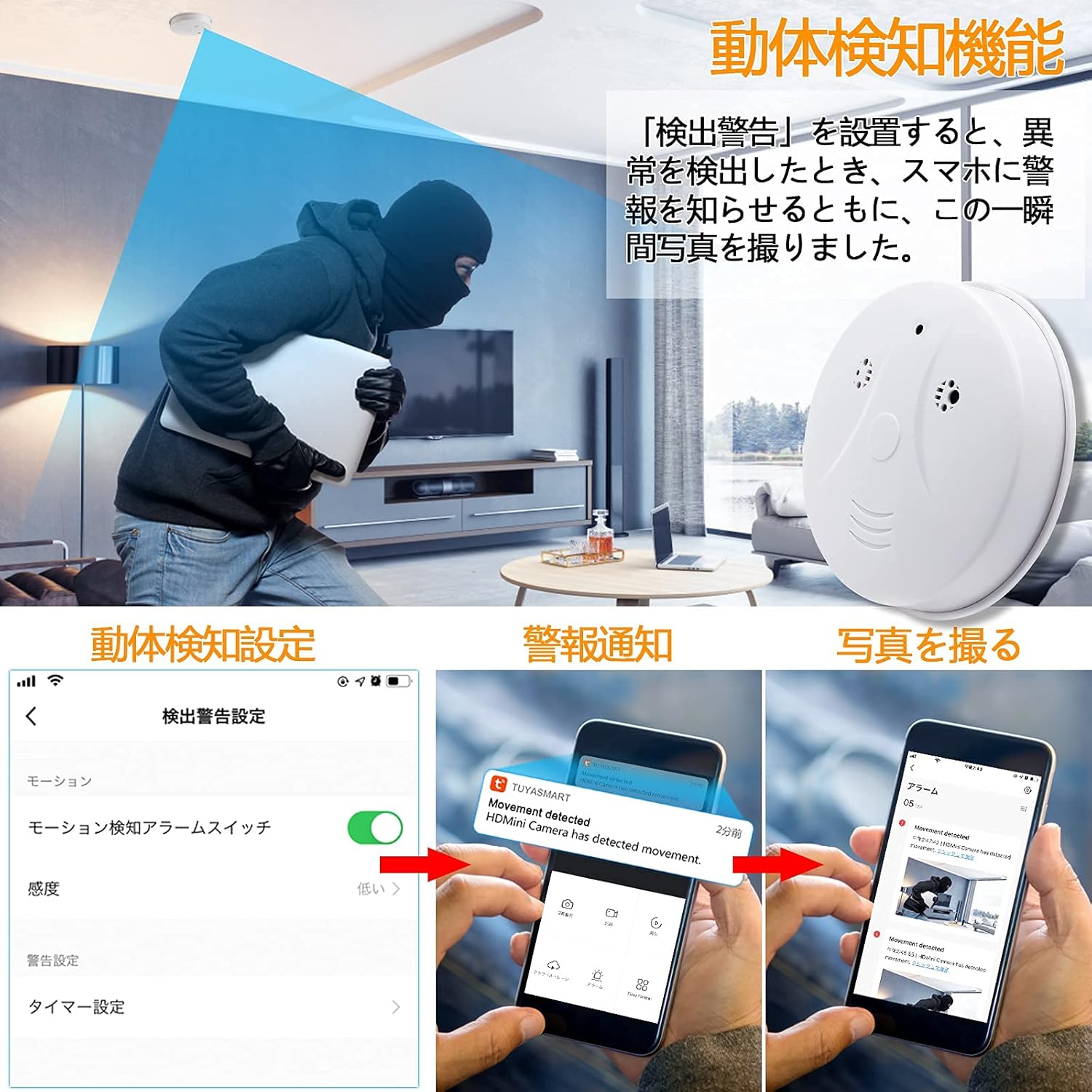 隠しカメラ 1080P画質 128GB 遠隔操作 モーション検知 自動警報