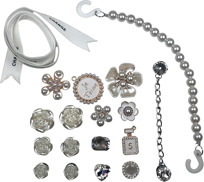 ホワイト リボン フラワー パール チェーン 18個 DY0517