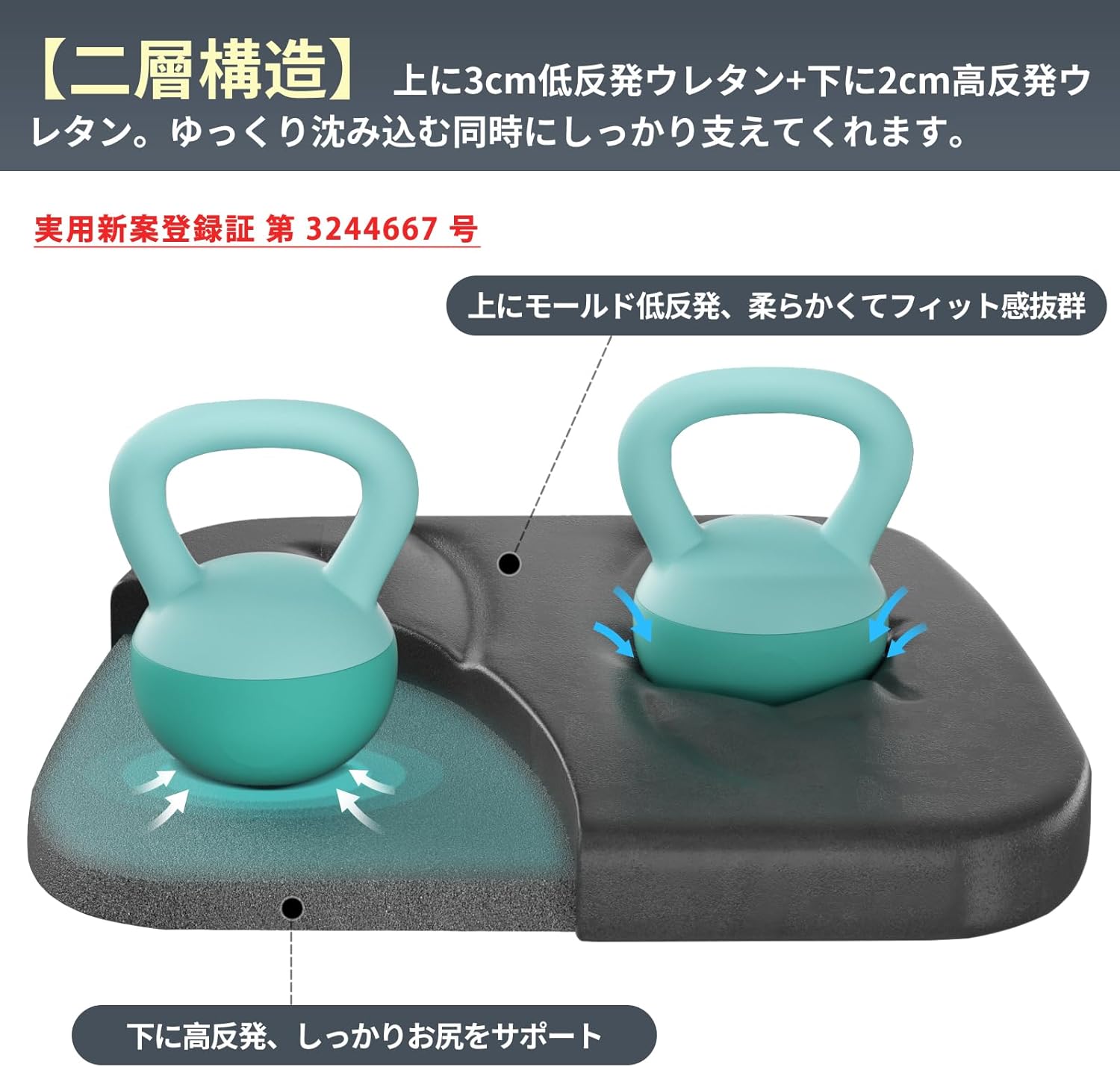 低反発+高反発 二層構造 椅子クッション 紐付き お尻が痛くならない 低反発クッション 洗えるカバー 滑り止め ダイニングチェアクッション シートクッション 1枚