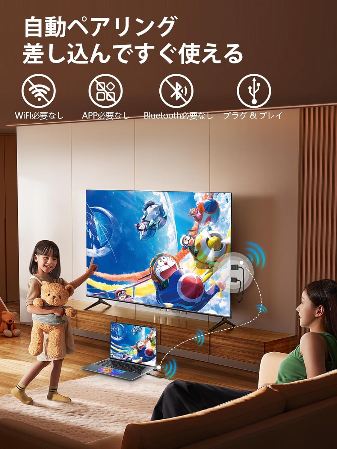 送受信機 セット, CS6 1080P 無線hdmi 50M使用距離 2.4G/5G WIFI&設定不要 プロジェクター