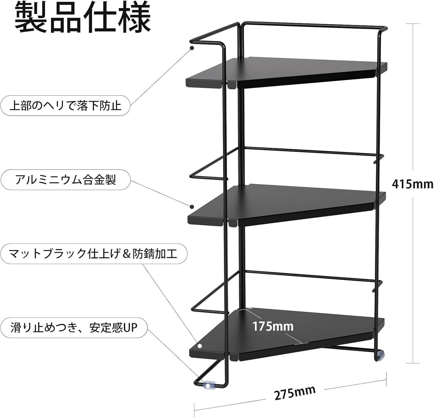 角に置きやすい 浴室用ラック 風呂 収納 多機能収納ラック ブラック