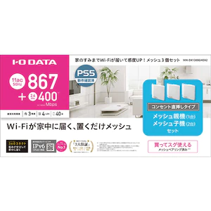 I/Oデータ360コネクト搭載867Mbps対応Wi-Fi メッシュルーター(コンセント直差しタイプ)【親機1台+子機1台セット】WN-DX1300GNEX