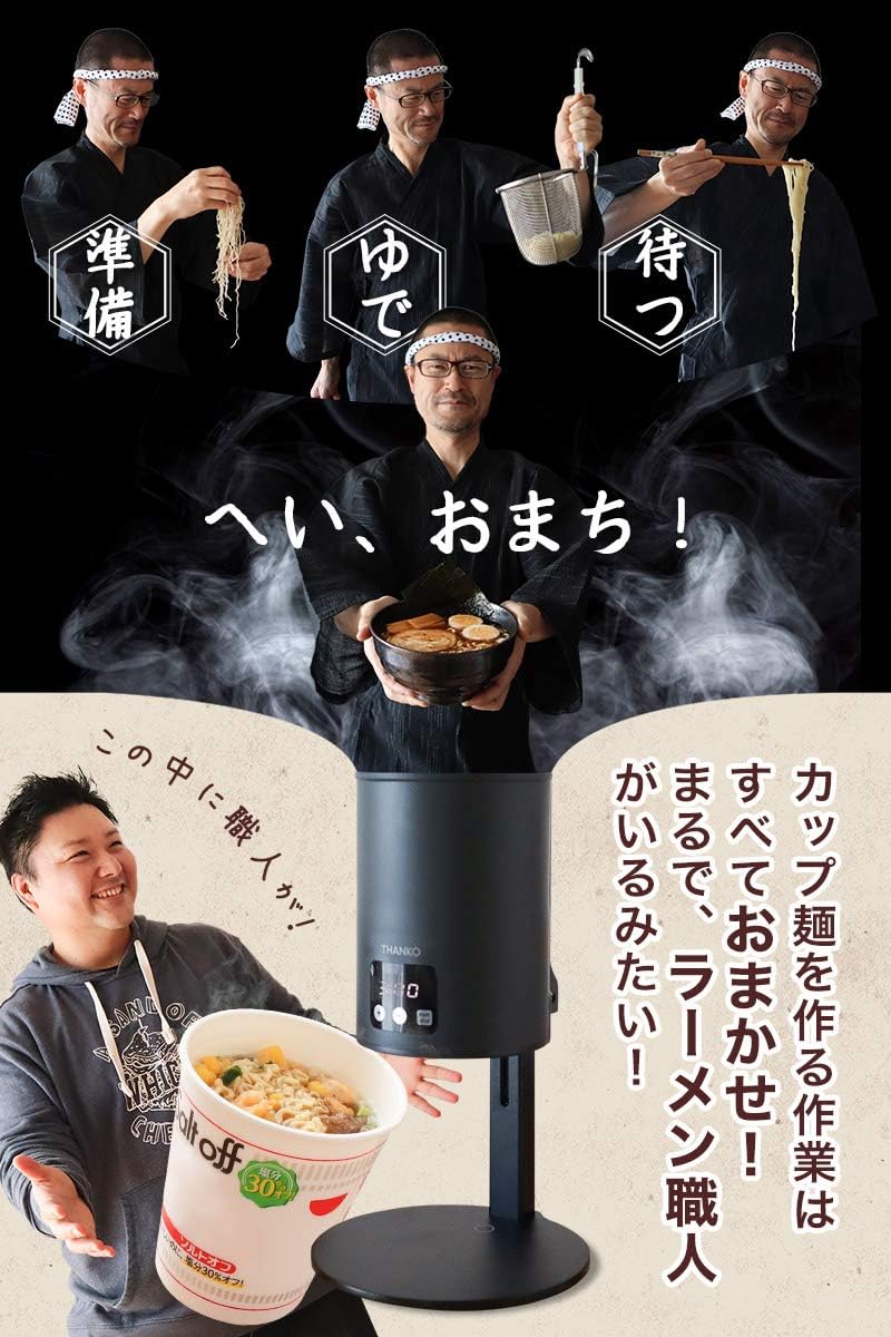 カップラーメンをセットし水を入れて待つだけ!すべておまかせで、カップラーメンを作り出してくれます。