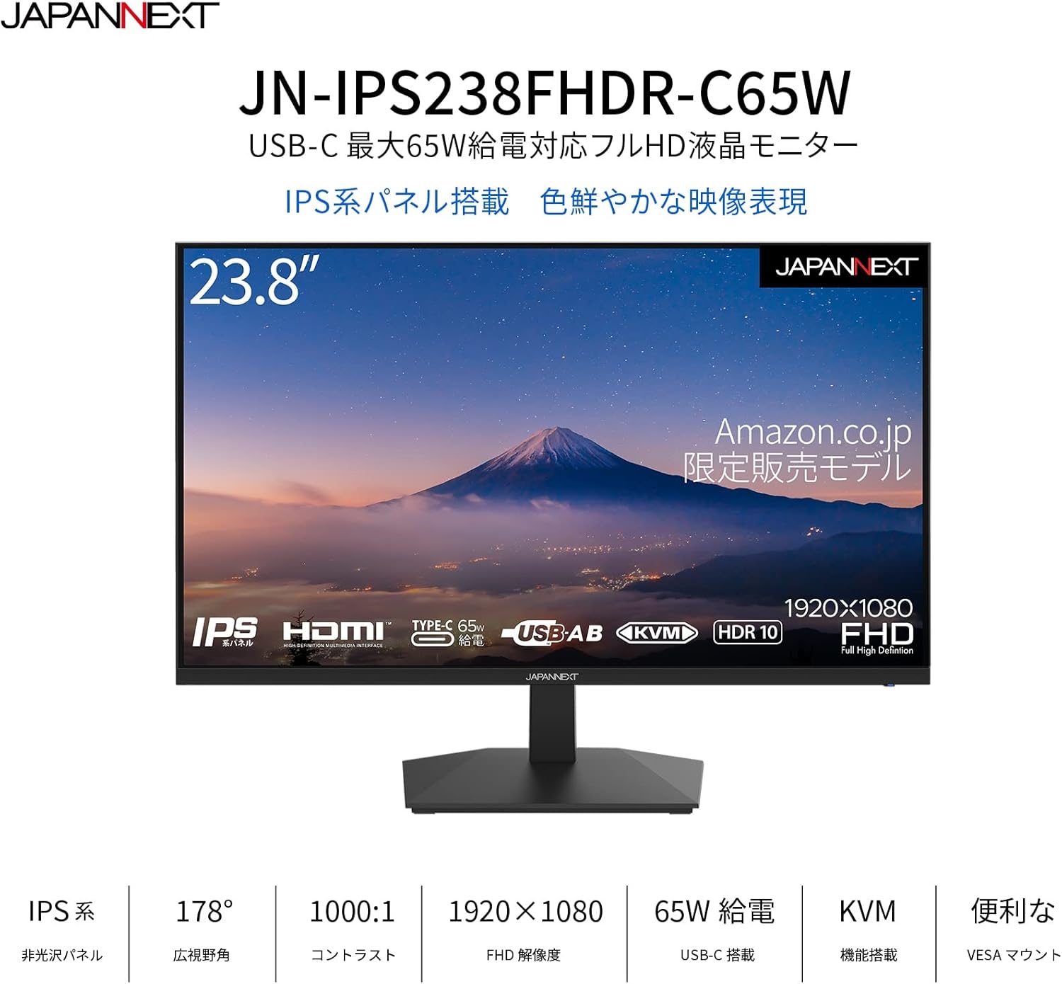 フルHD 1920x1080解像度 IPS ディスプレイ (KVM/HDMI/USB-C 給電 (65W) / スピーカー内蔵