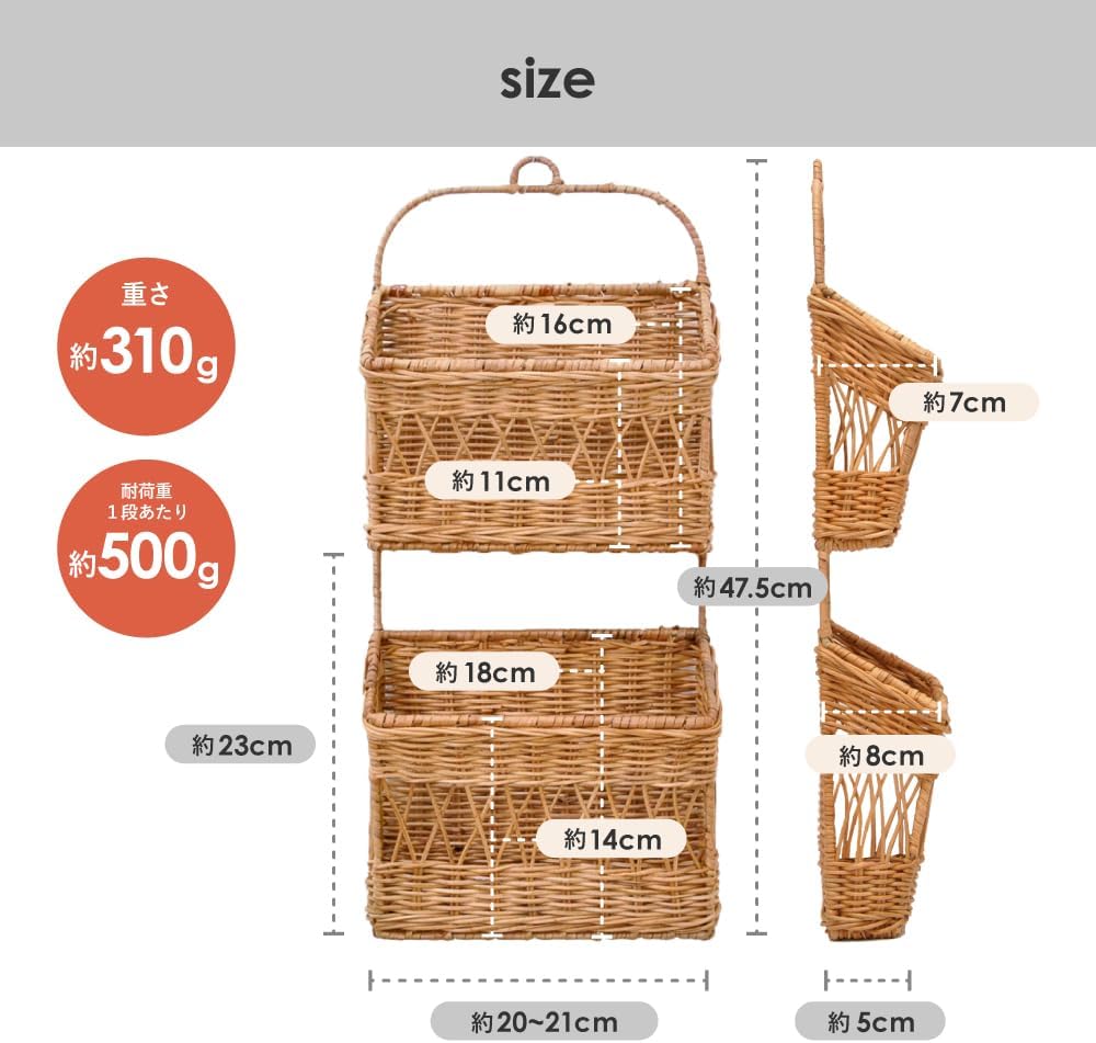 壁面を有効利用したラタン製のレターポケット