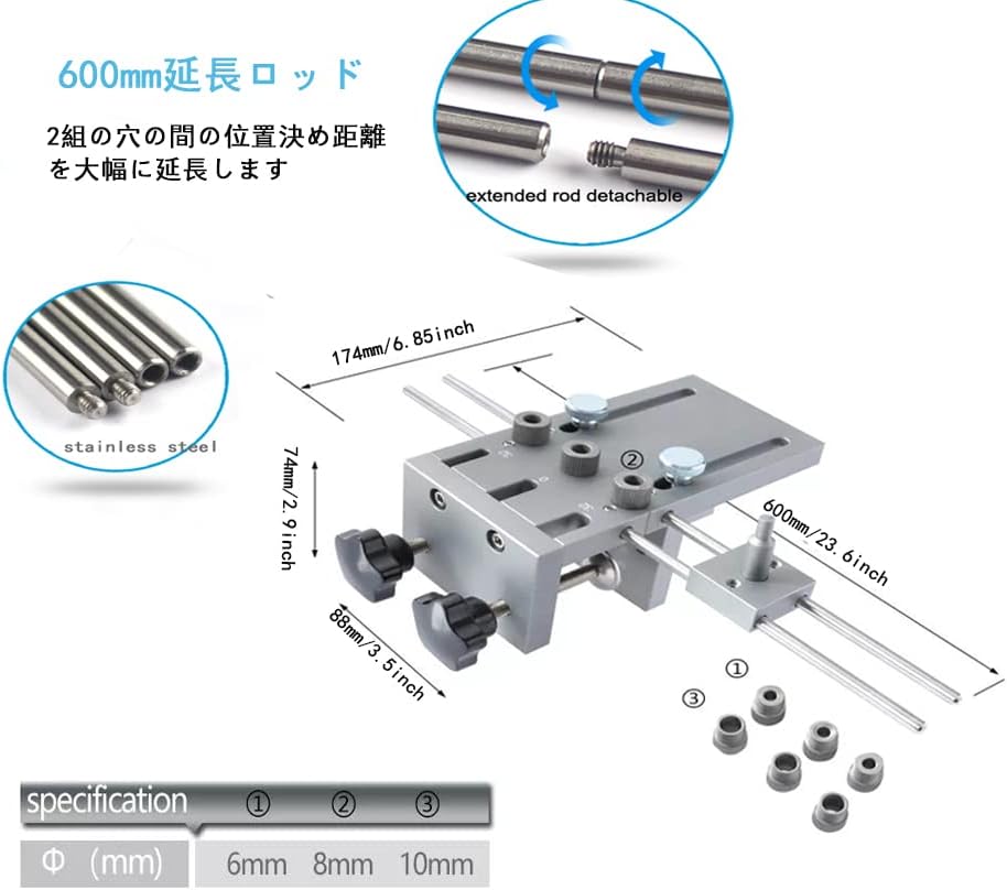 木工ドリルガイドキット 6 8 10mm ドリルストッパー穴あけ治具 木工穴あけガイドツール ドリルロケータ