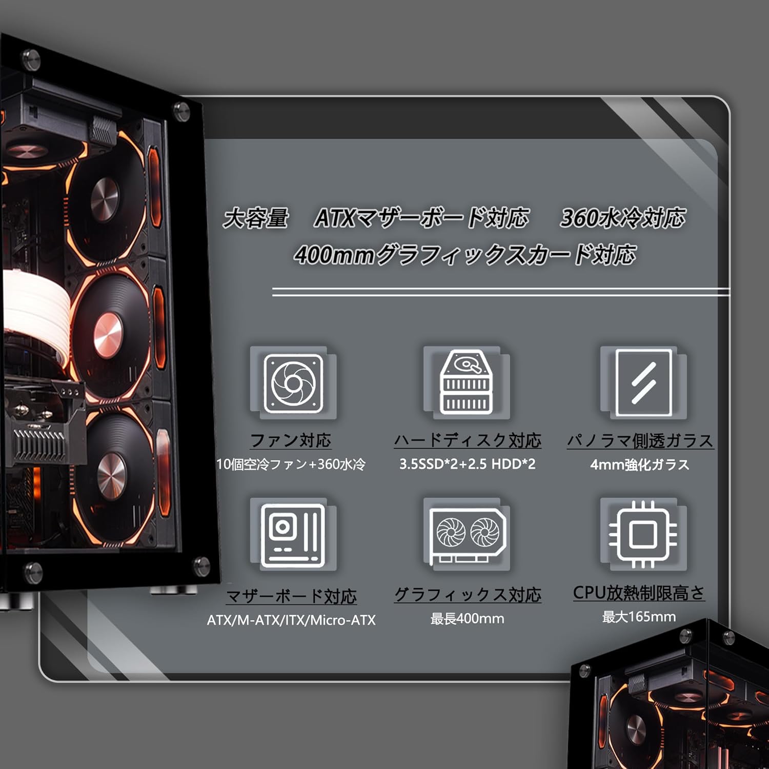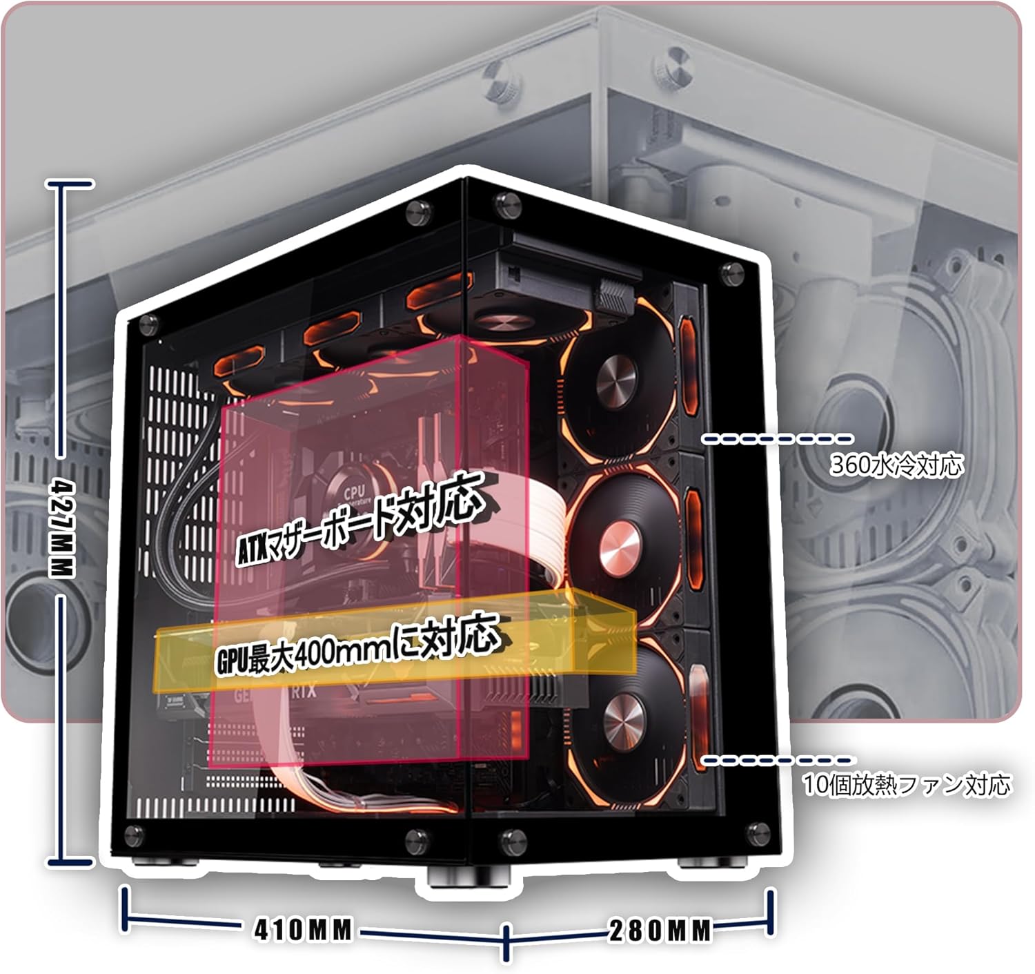 pcケース atx ピラーレスpcケース type-c高速インターフェースUSB3.0