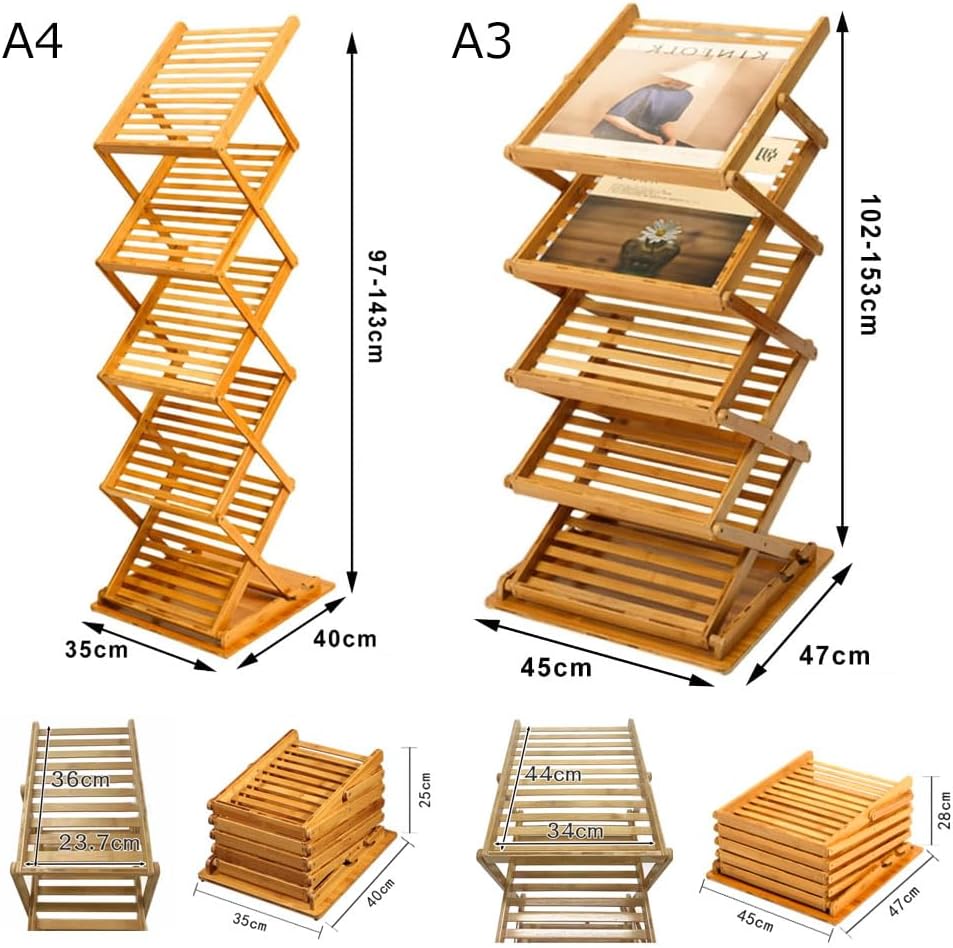 マガジンラック 折りたたみ式 5段 竹製 片面 パンフレットスタンド カタログラック おしゃれ 雑誌ラック 組み立て不要 イベントや催事に (A4サイズ)
