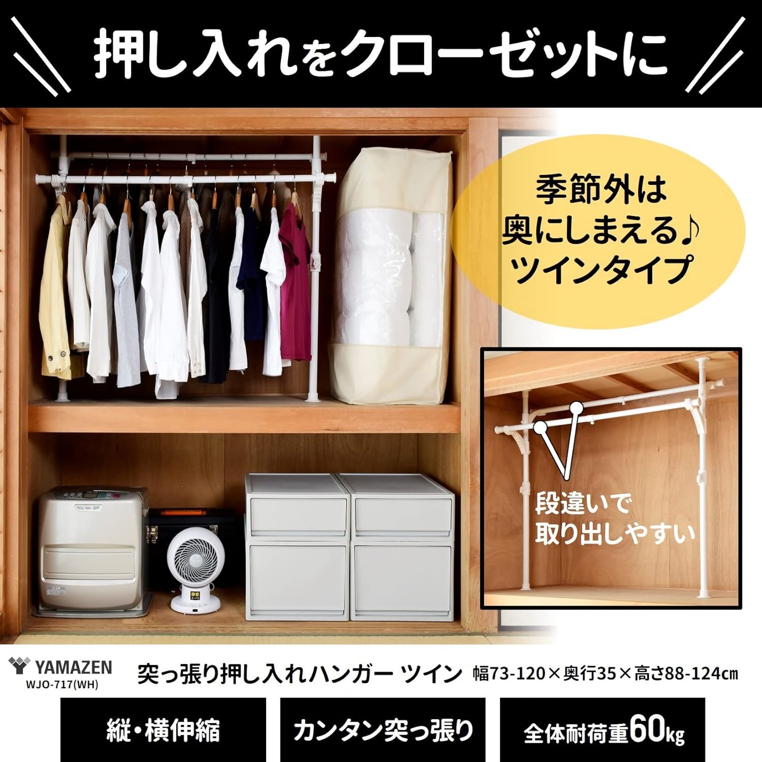 伸縮 (幅73-120×奥行35×高さ88-124?) 突っ張り ワンタッチで設置可能