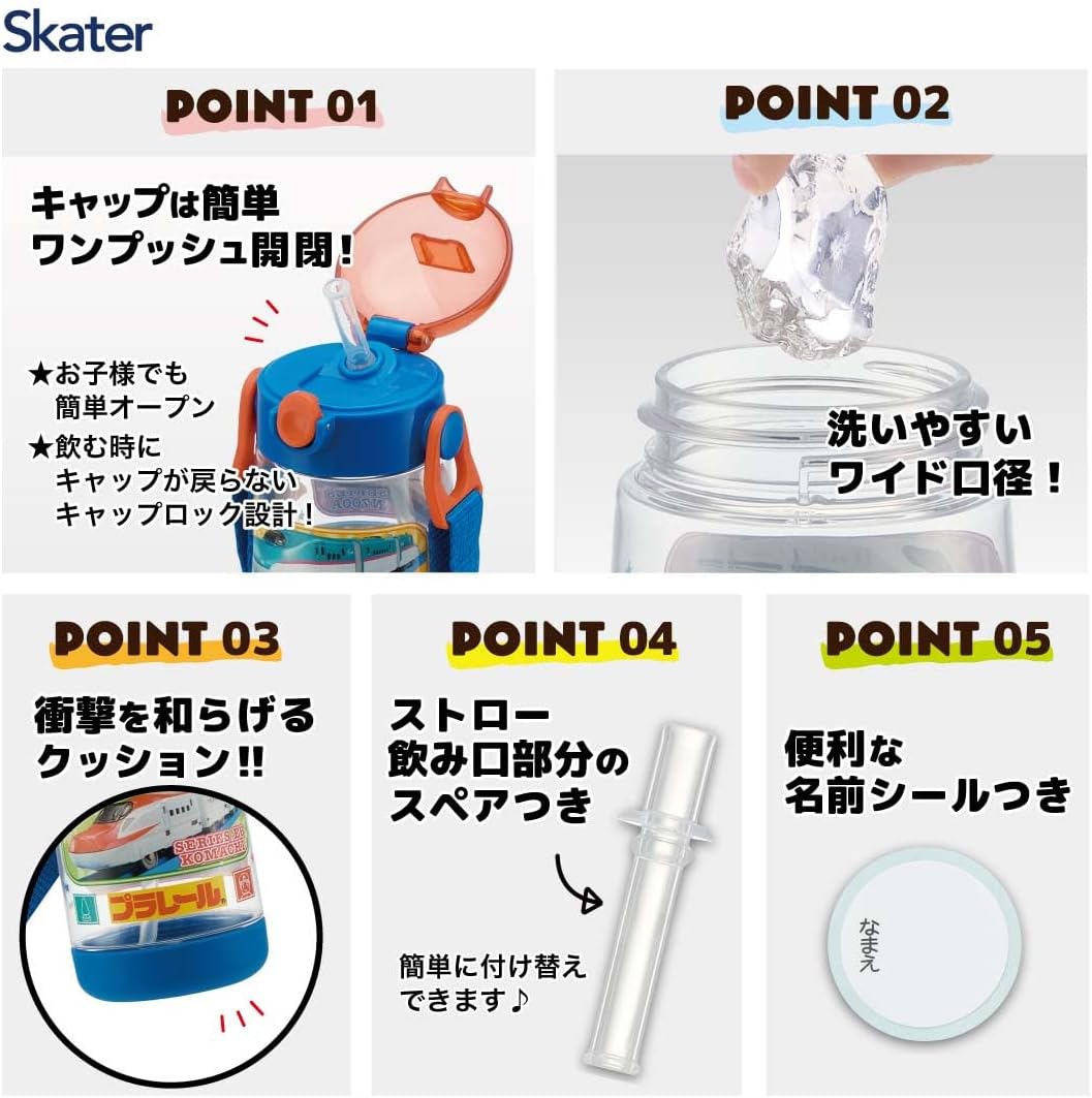 スケーター(Skater) 子供用 ストロー付き 水筒 クリアボトル SK0495