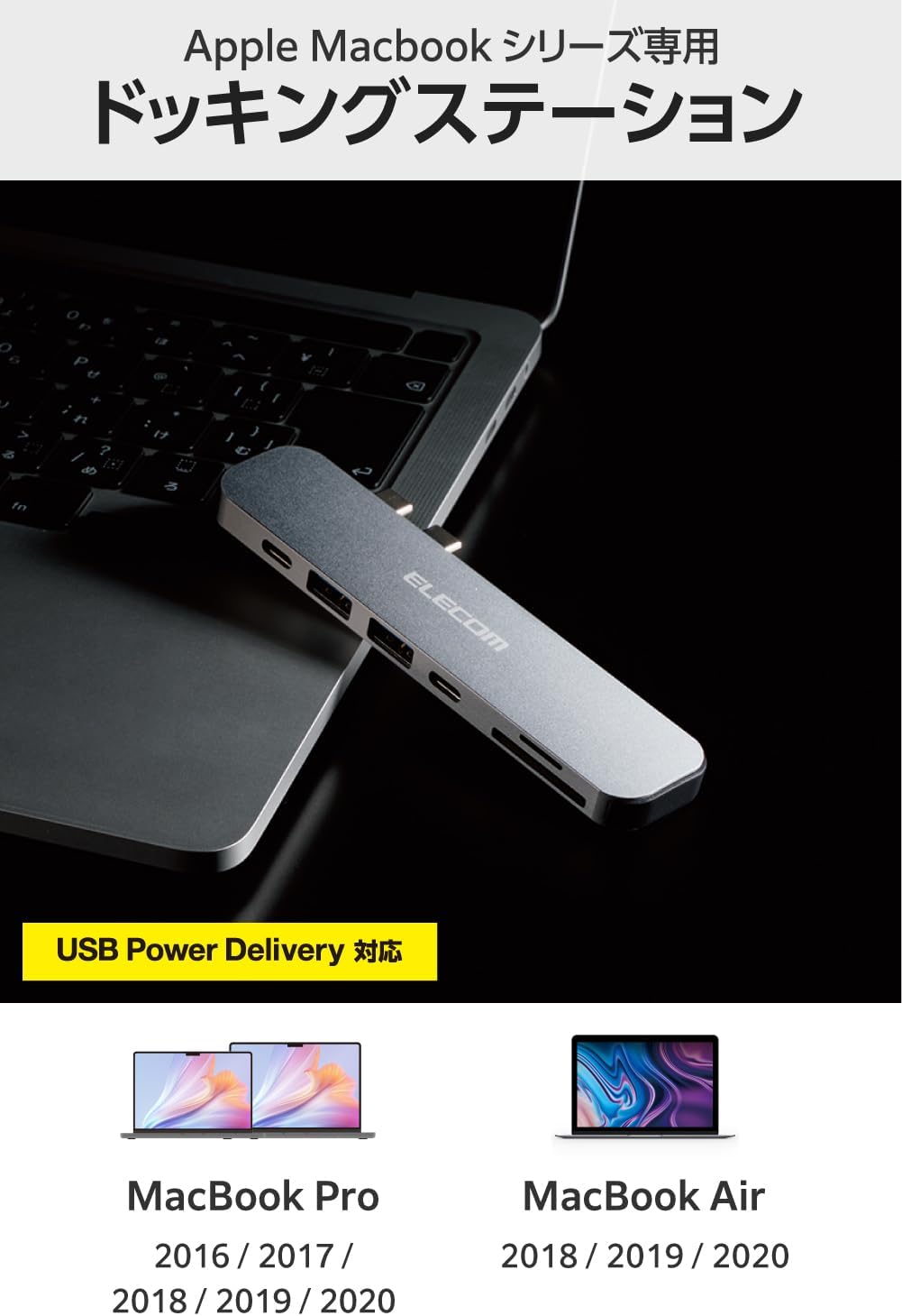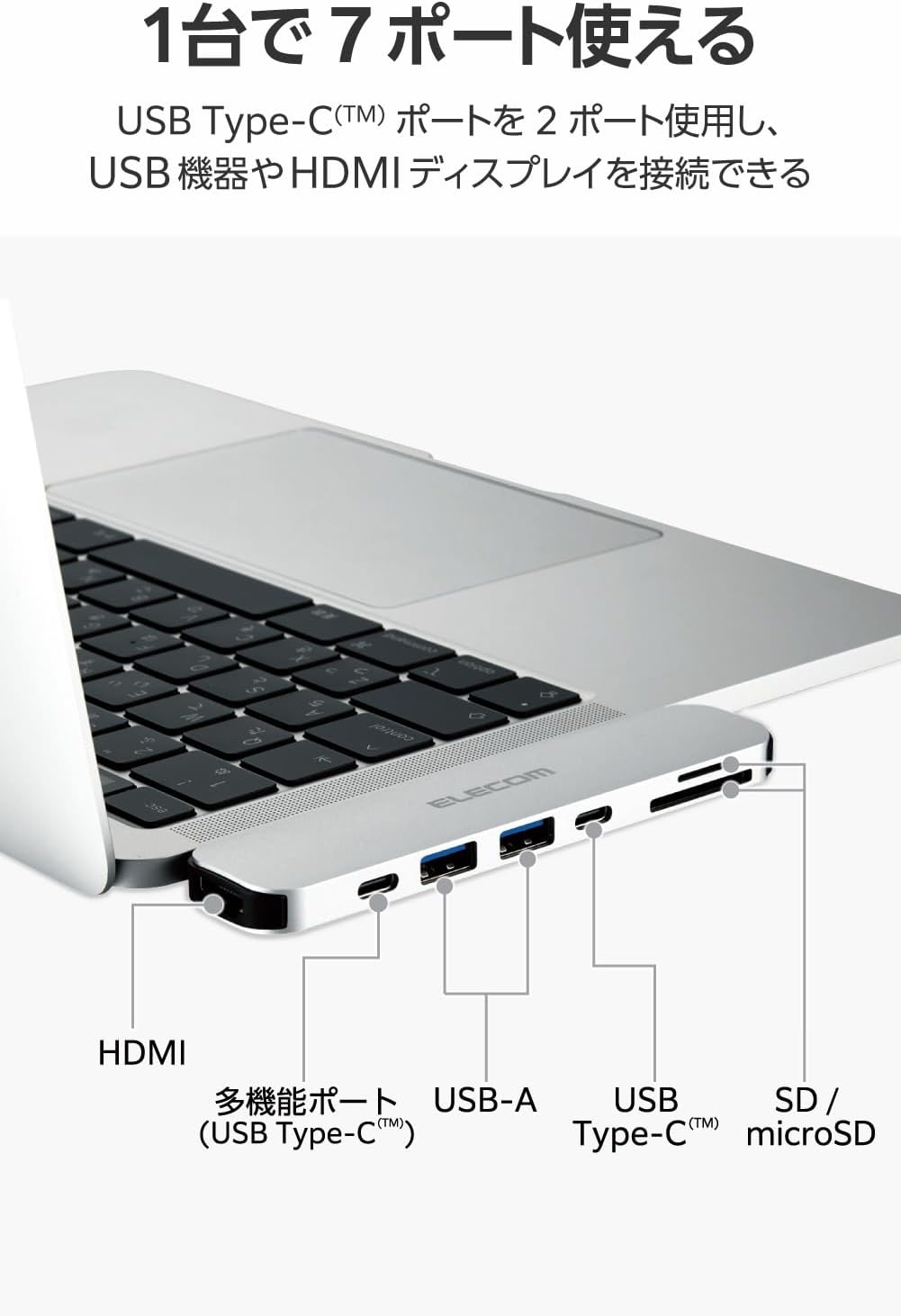 MacBook専用 7-in-2 USB PD対応 (100W) 入出力Type-C×1 データ転送用