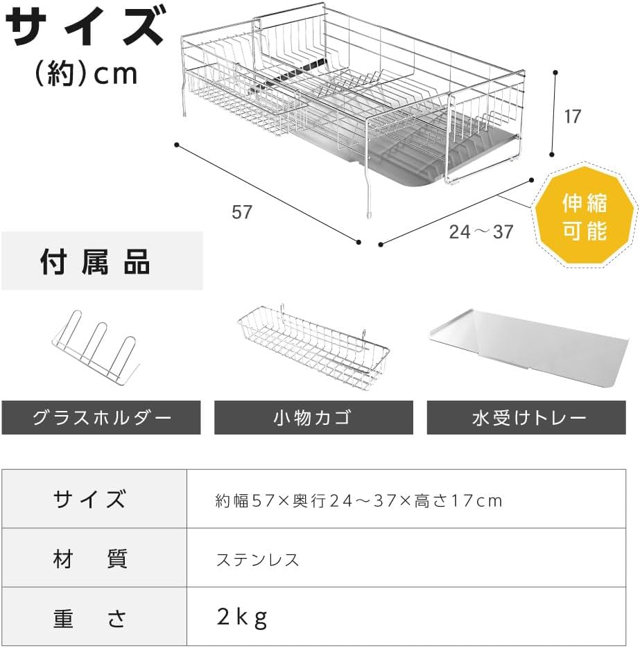 伸縮 ステンレス 水切りかご 大容量 水切りカゴ シンク上 横置 キッチン収納 箸置き付き 省スペース 組み立て簡単 収納ラック 新生活 passo-yy01
