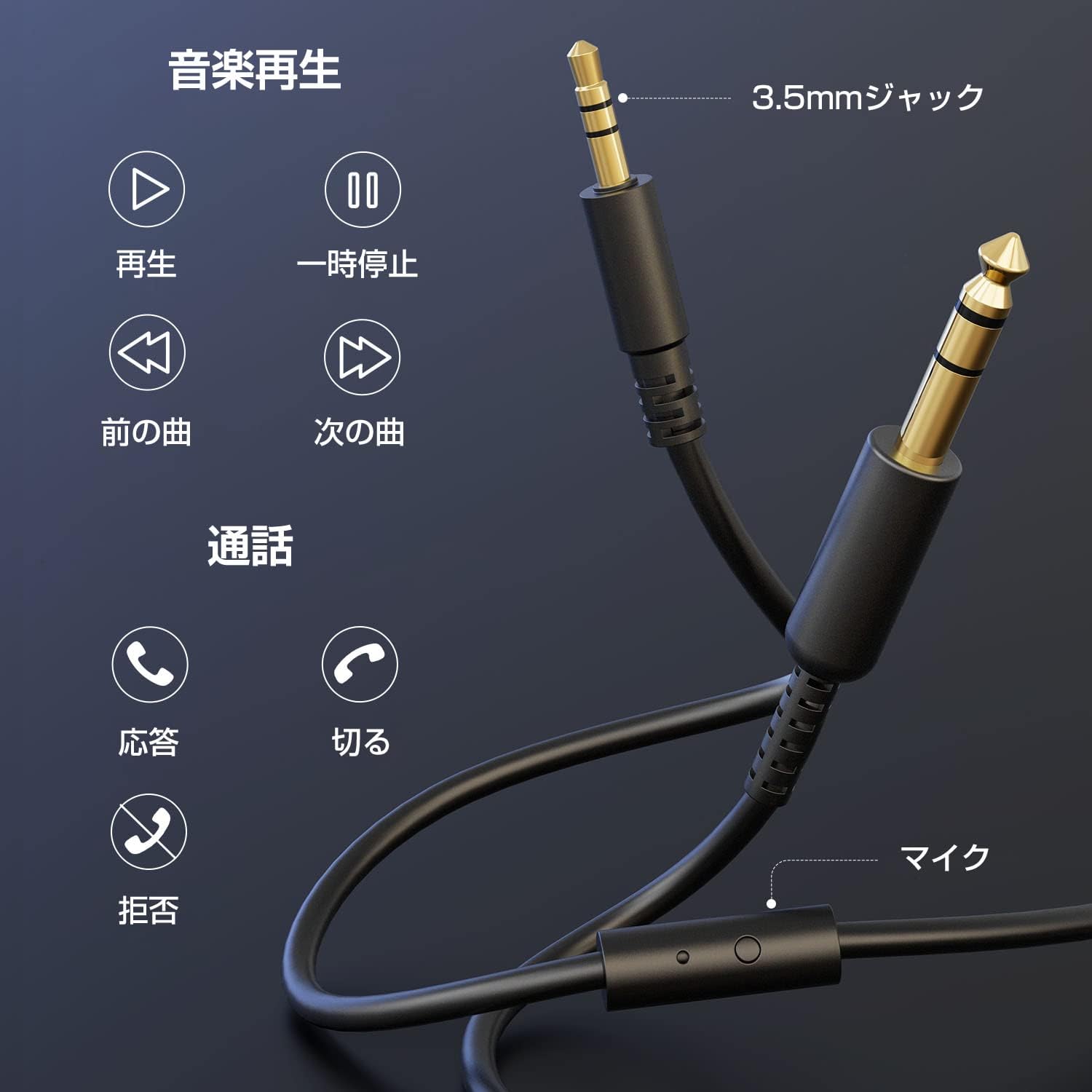 HiFi オーバーイヤーヘッドフォン マイク付き 50mmドライバー 密閉型