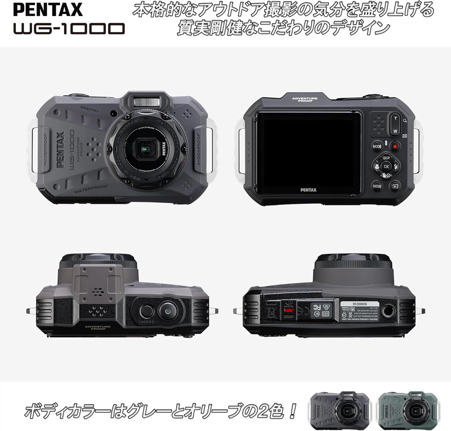 ペンタックス PENTAX WG-1000 グレー【バッテリーセット】