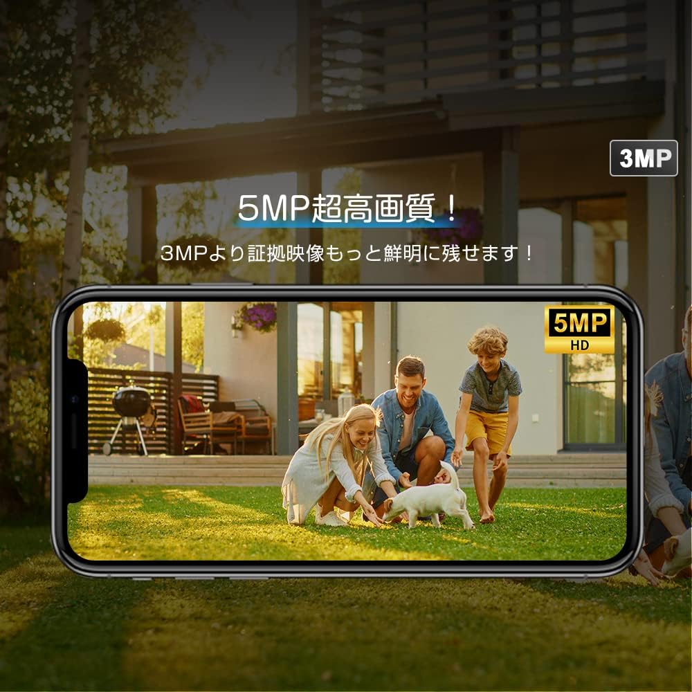 ワイヤレス 屋外 監視カメラ 5MP 金属製 夜間カラー Wi‐Fi プリセット機能 ヒューマン検知 動体検知 自動追尾 FTP対応 Onvif/NVR対応 パンチルト機能 24時間録画 モーション録画 スケジュール録画 双方向会話 家族共有 128GBSDカード対応 LANケーブル 防犯ステッカー付き IP66防水 iOS/Android/Windows/MAC対応 日本語取扱説明書