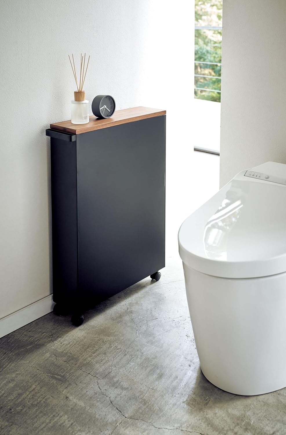 山崎実業(Yamazaki) ハンドル付き スリム トイレラック ブラック SK0187