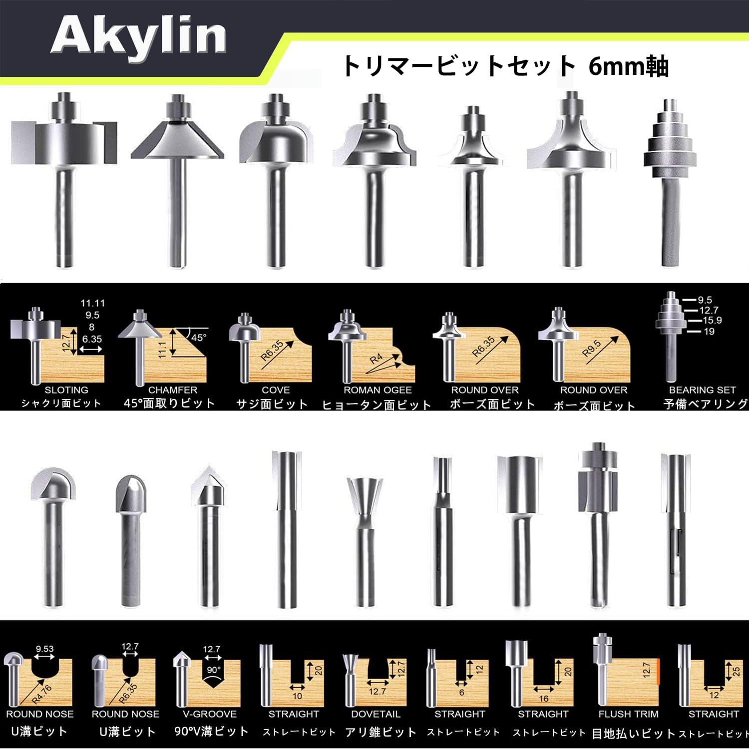 リマービットセット 超硬ルータービット 15本トリマービット+ ベアリング4つ タングステン鋼