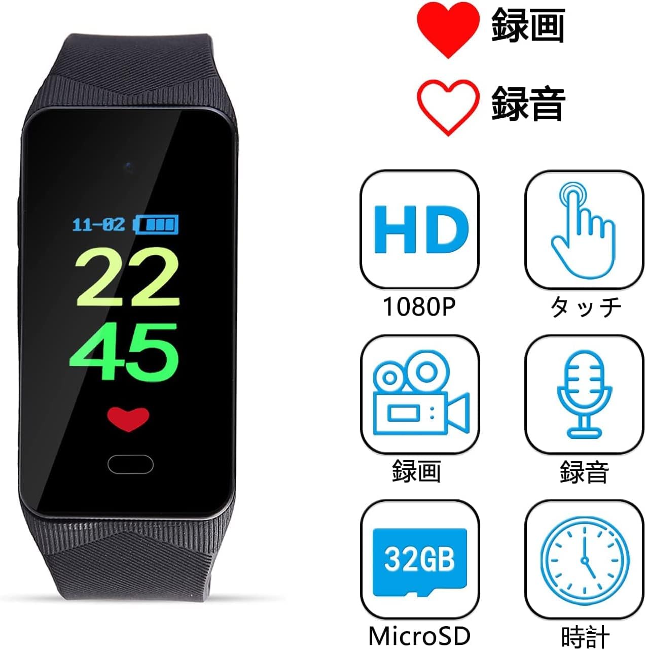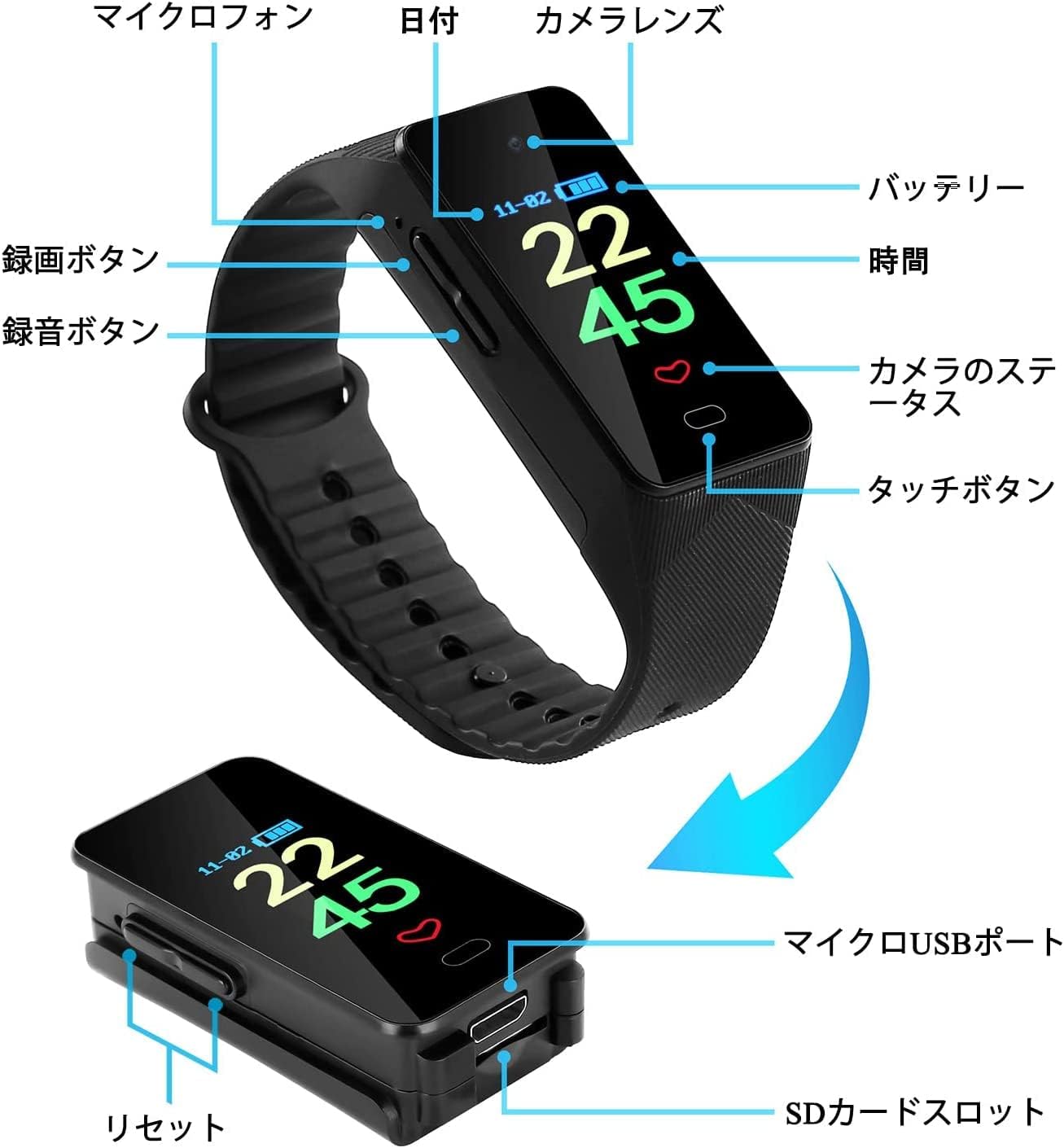 着用可能スマートブレスレット型隠しビデオカメラ タッチボタン録音