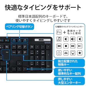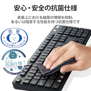 エレコムBluetoothフルキーボード 薄型 メンブレン式 抗菌 マルチペアリング対応(ブラック)TK-FBM120KBK