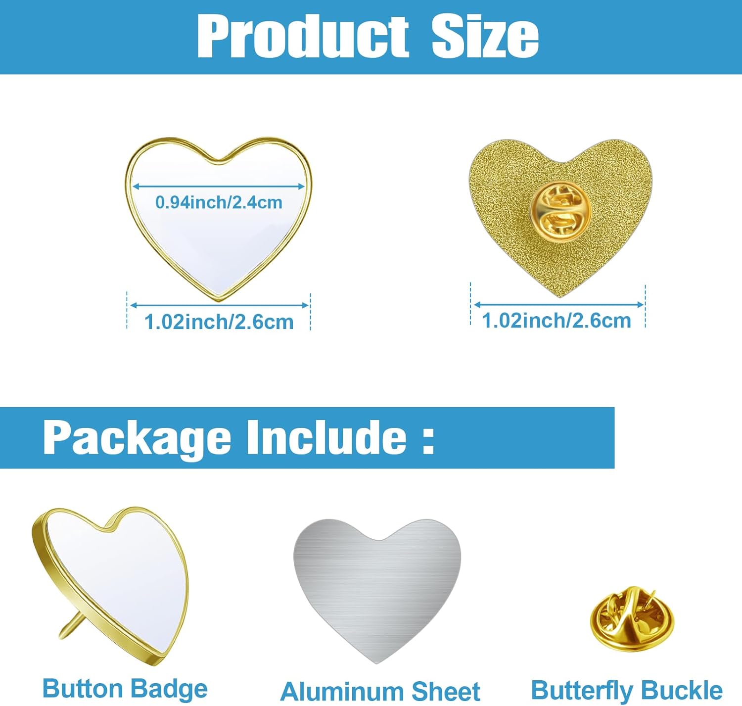 アルミニウムシート バタフライピンバック DIYクラフトジュエリーメイキングラペル用品(ハート型 ゴールド 30個)