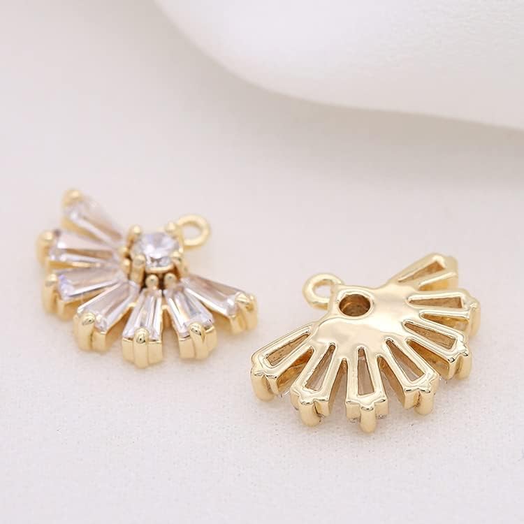 18k ゴールドカラープレート真鍮とジルコン扇形