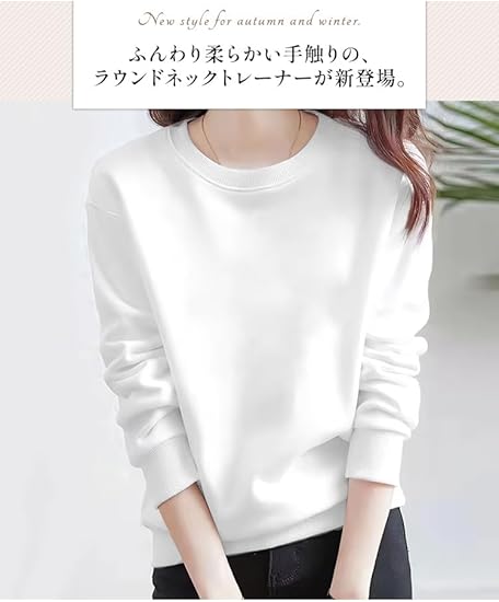 ゆったり 袖リブ トップス スウェット 長袖 無地 ラウンドネック