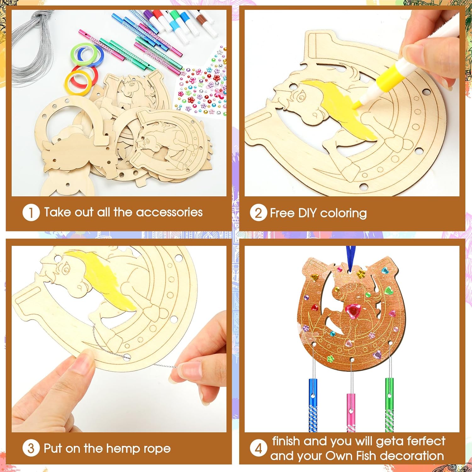 自分だけの木製蹄鉄 風鈴 蹄鉄 木製ぬりえ アクティビティ DIY