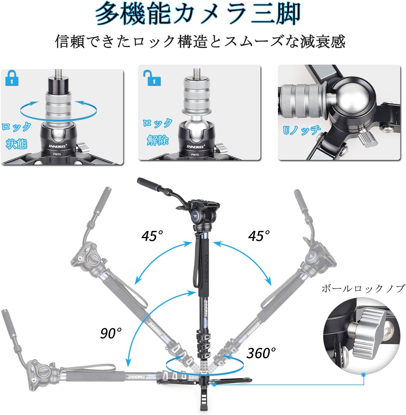 一脚スタンド 2段開脚 角度調整 スマホ デジカメ 折り畳み式 アルミ CNC 360度 ボールヘッド