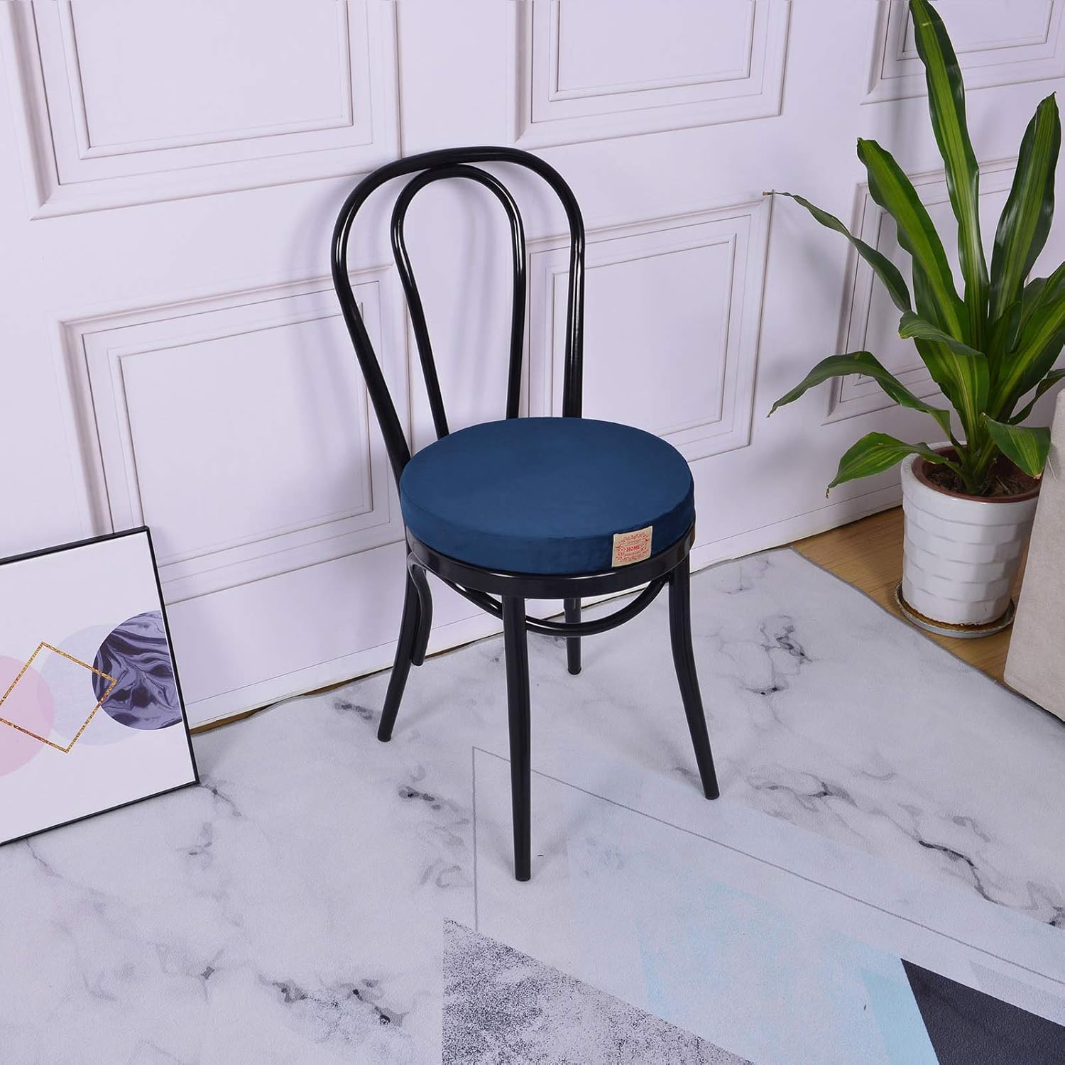 丸型クッション シェルチェア 丸型 椅子用クッション 直径 40cm 洗える ラウンドクッション ふわふわ ベロア生地 無地 シートクッション 座面クッション 紺色2枚セット