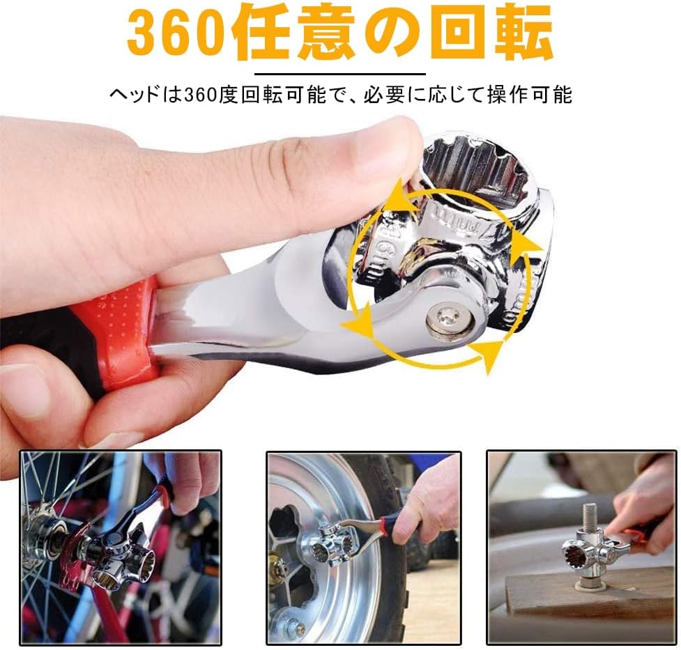 万能ソケット レンチ付き ユニバーサルソケット 8-19MM対応 車・バイク修理 DIY工具 1セット入り