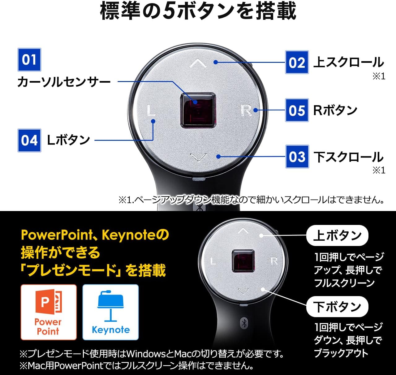Bluetooth ホイール搭載 USB-C充電 PowerPoint・Keynote操作対応