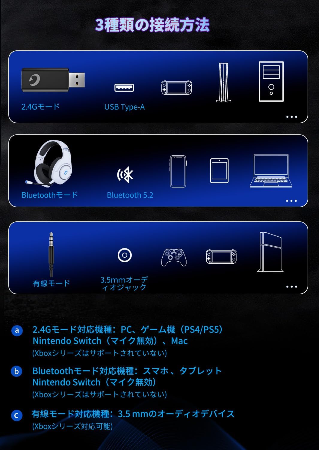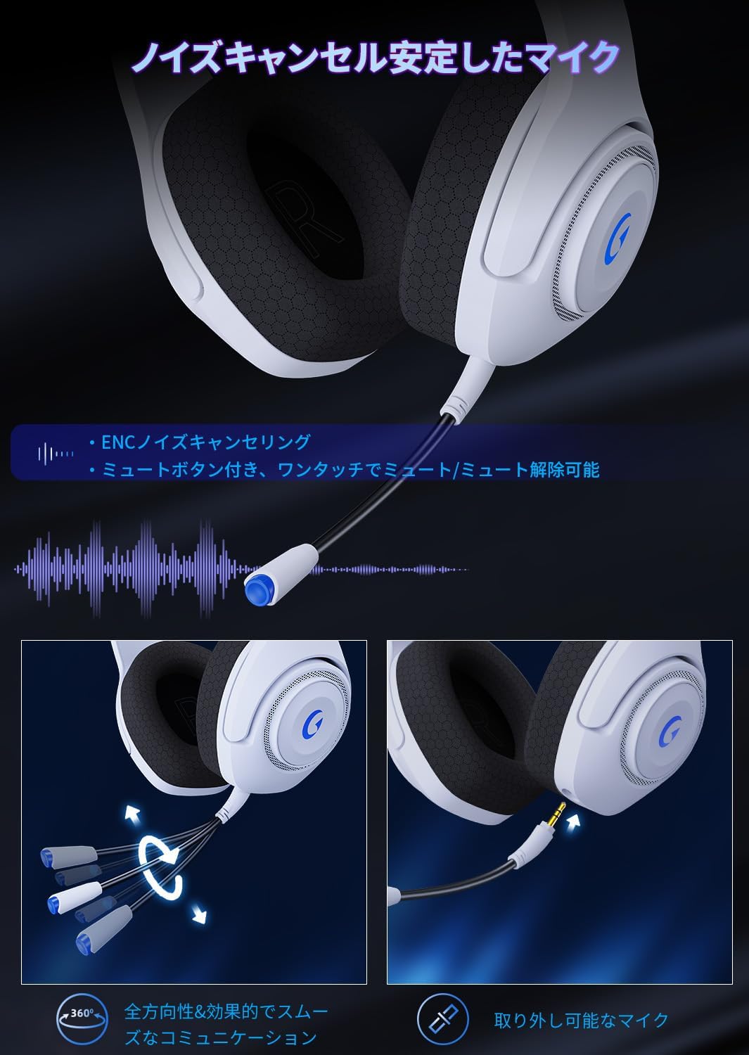 50MMドライバー 低遅延ゲームヘッドセット 40時間連続再生 重低音強化 無線