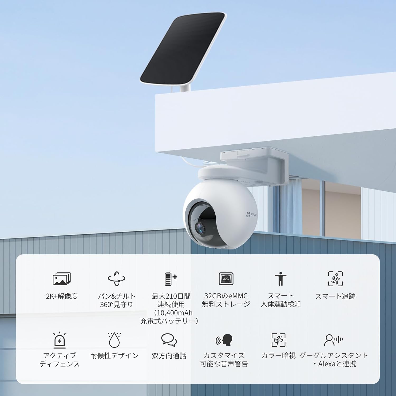無線 屋外 工事不要 ソーラー ワイヤレス 監視カメラ 10400mAh スマホで見る iphone対応 常時録画機能付き 360度PTZ 自動追尾 カラーナイトビション 双方向通話 人感センサー 動体検知 遠隔操作 セキュリティカメラ ネットワークカメラ 防水カメラ 定点カメラ アレクサ対応 2.4Ghz wifi・有線lan接続 HB8 4MP Kit