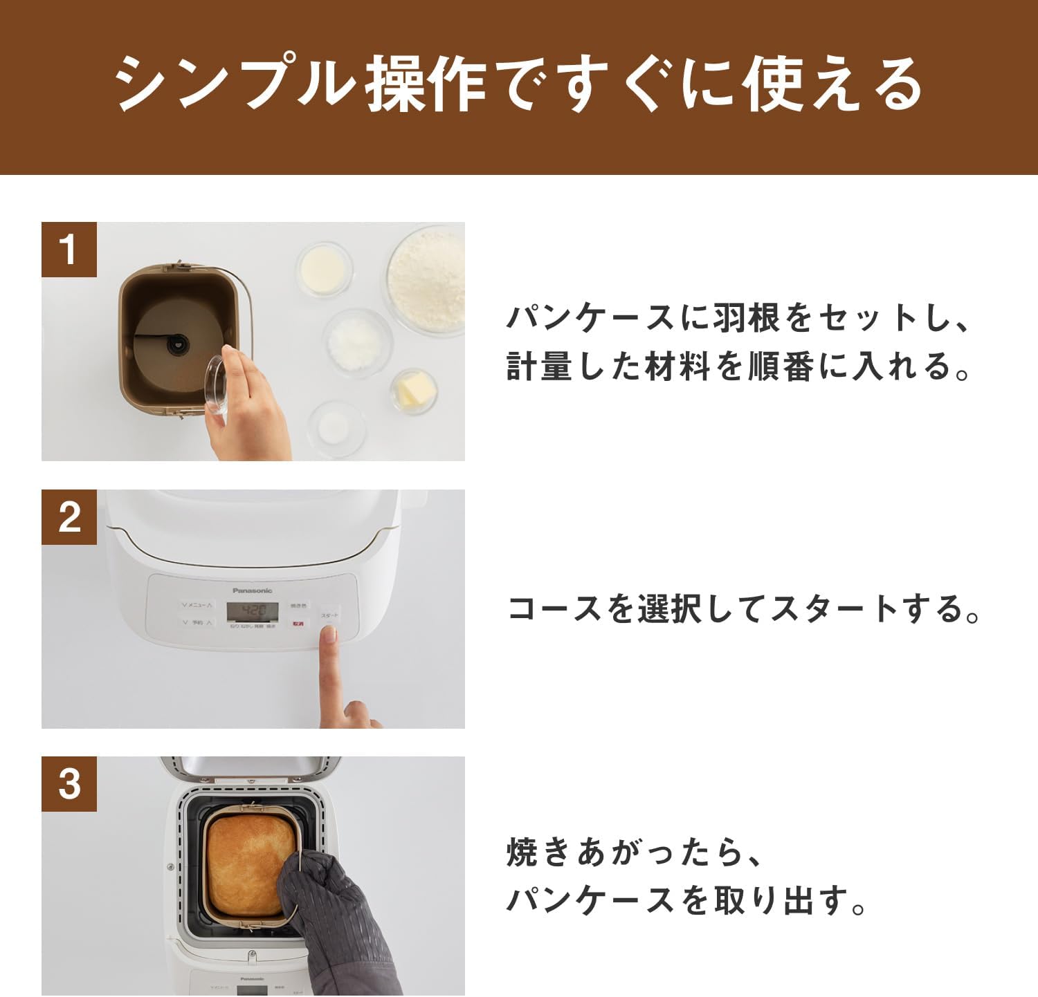 焼きたてパンをおうちで手軽に:3STEPでおまかせ。早焼き食パンなら約2時間で焼き上がります。