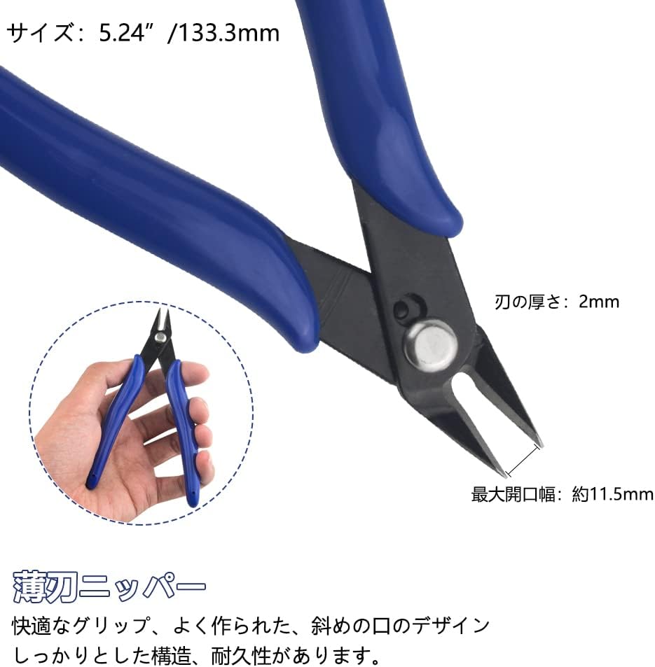 薄刃ニッパー カッティングマット サンドペーパー 精密ピンセット モデラーズナイフ(10個 替え刃付き)